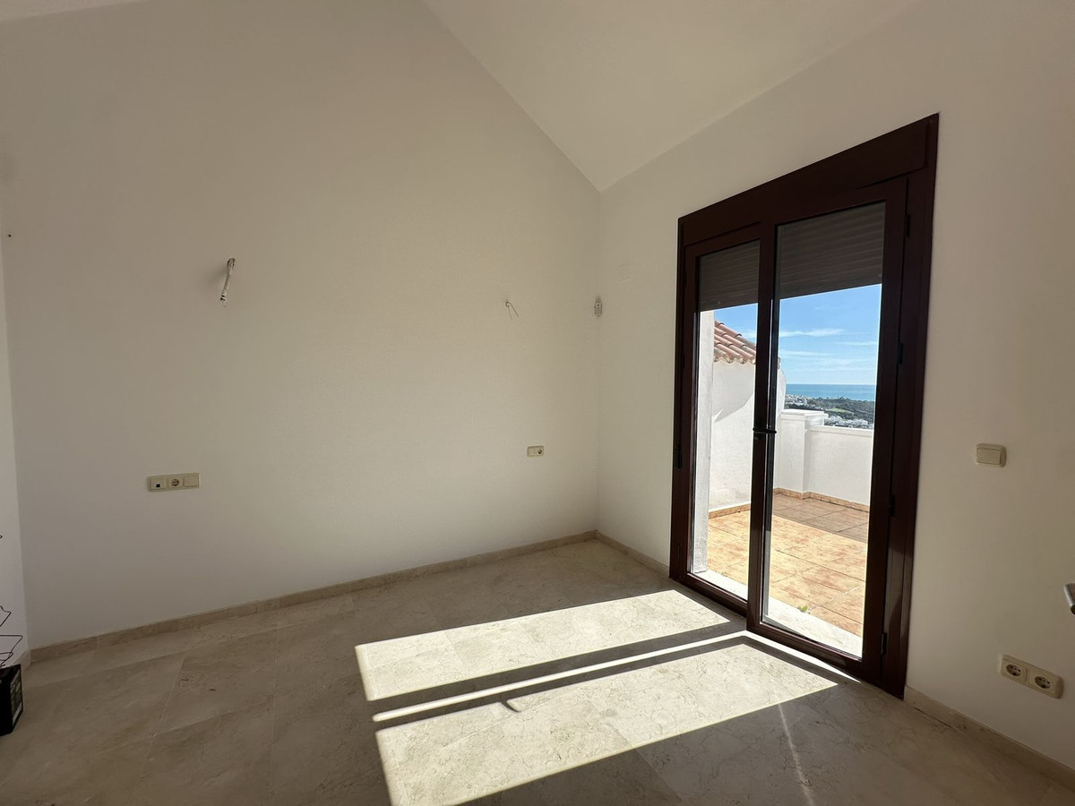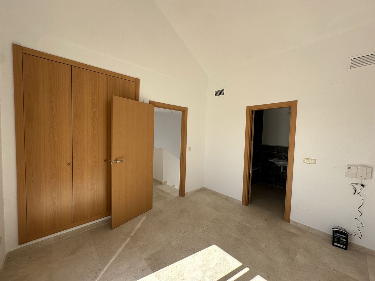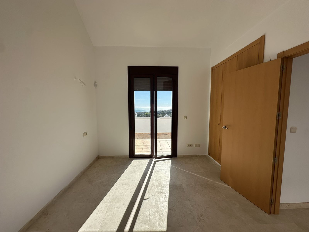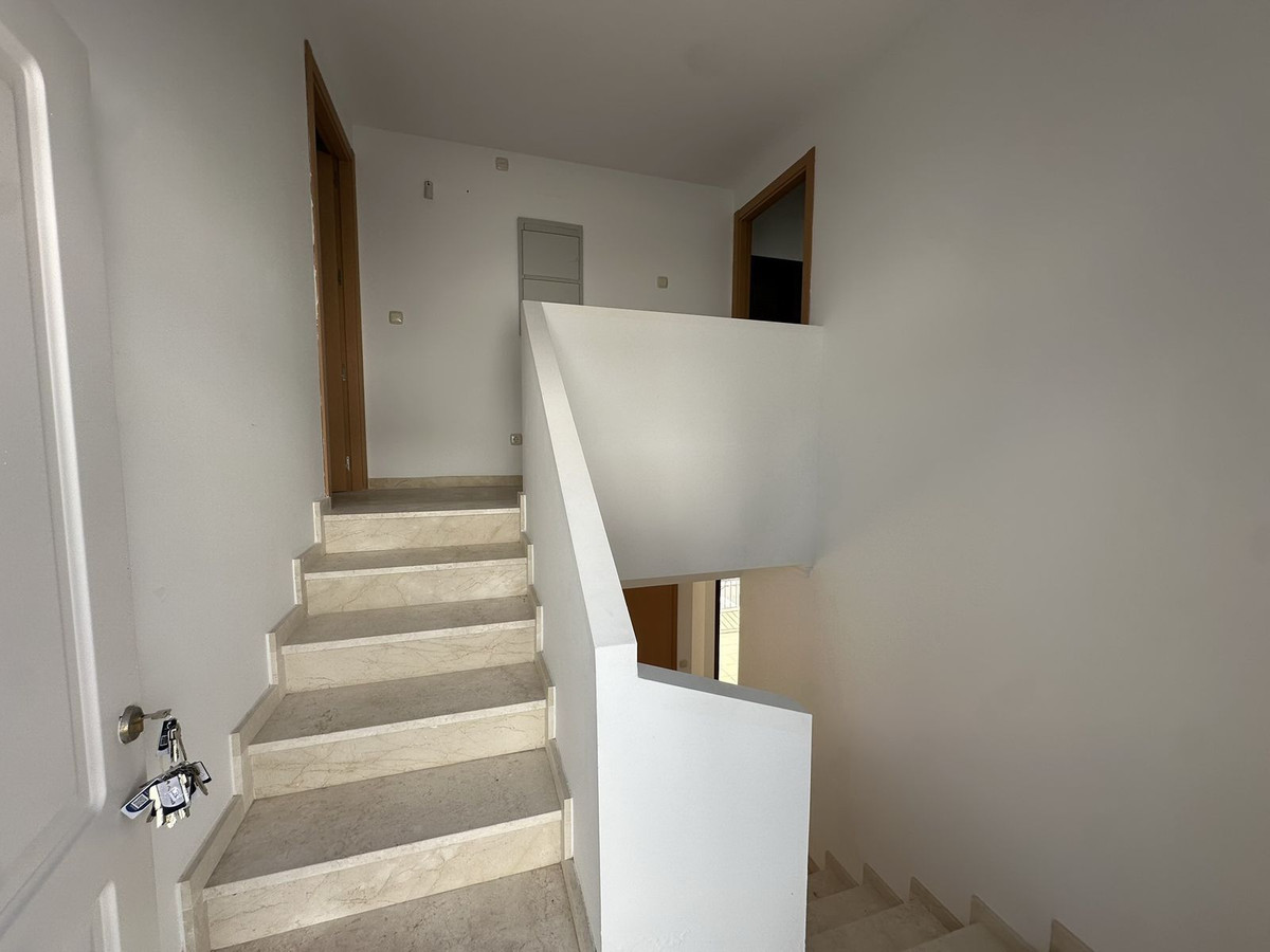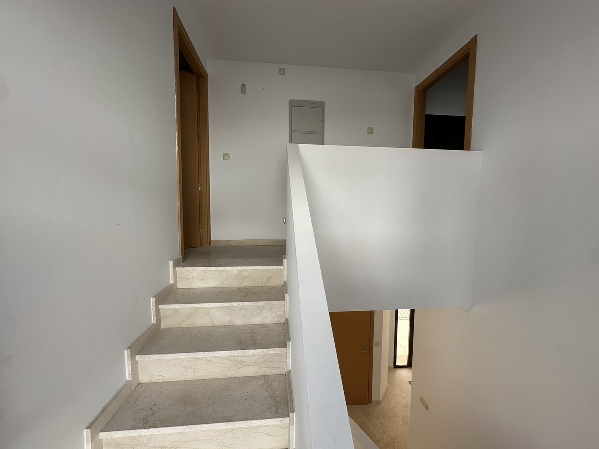 Første sal rummer soveafdelingen med entré, fordelingsgang, to soveværelser med indbyggede skabe og to komplette badeværelser, som sikrer privatliv og komfort. Derudover findes en stor åben terrasse, perfekt til at nyde Costa del Sols klima og den imponerende panoramaudsigt.