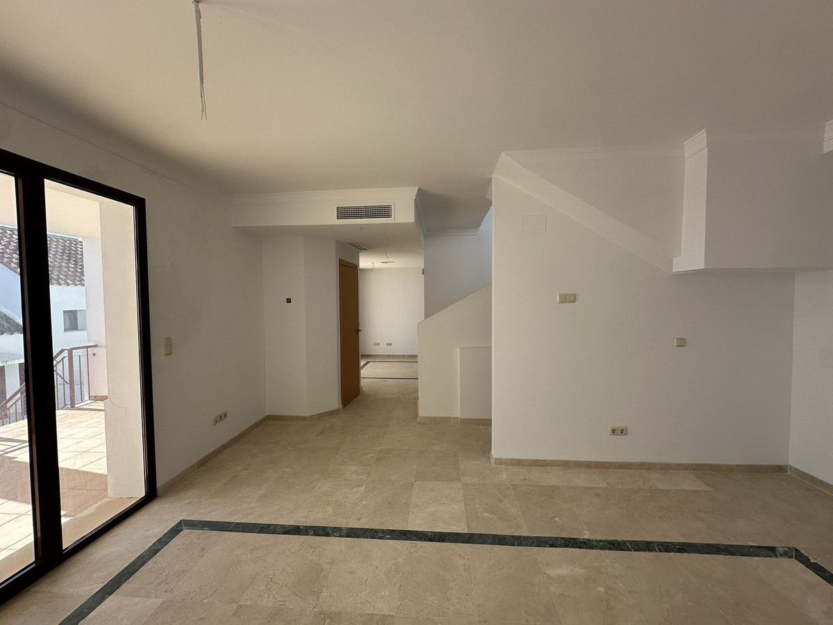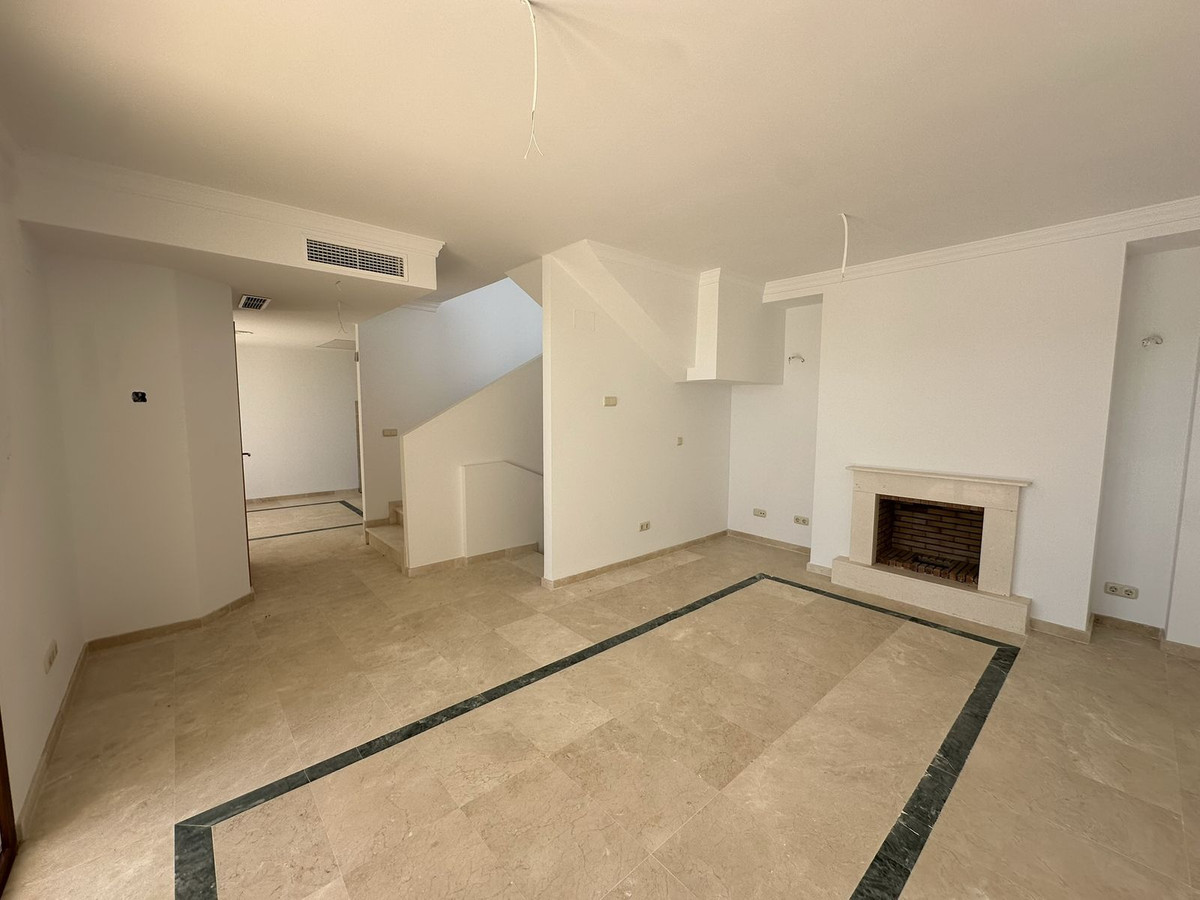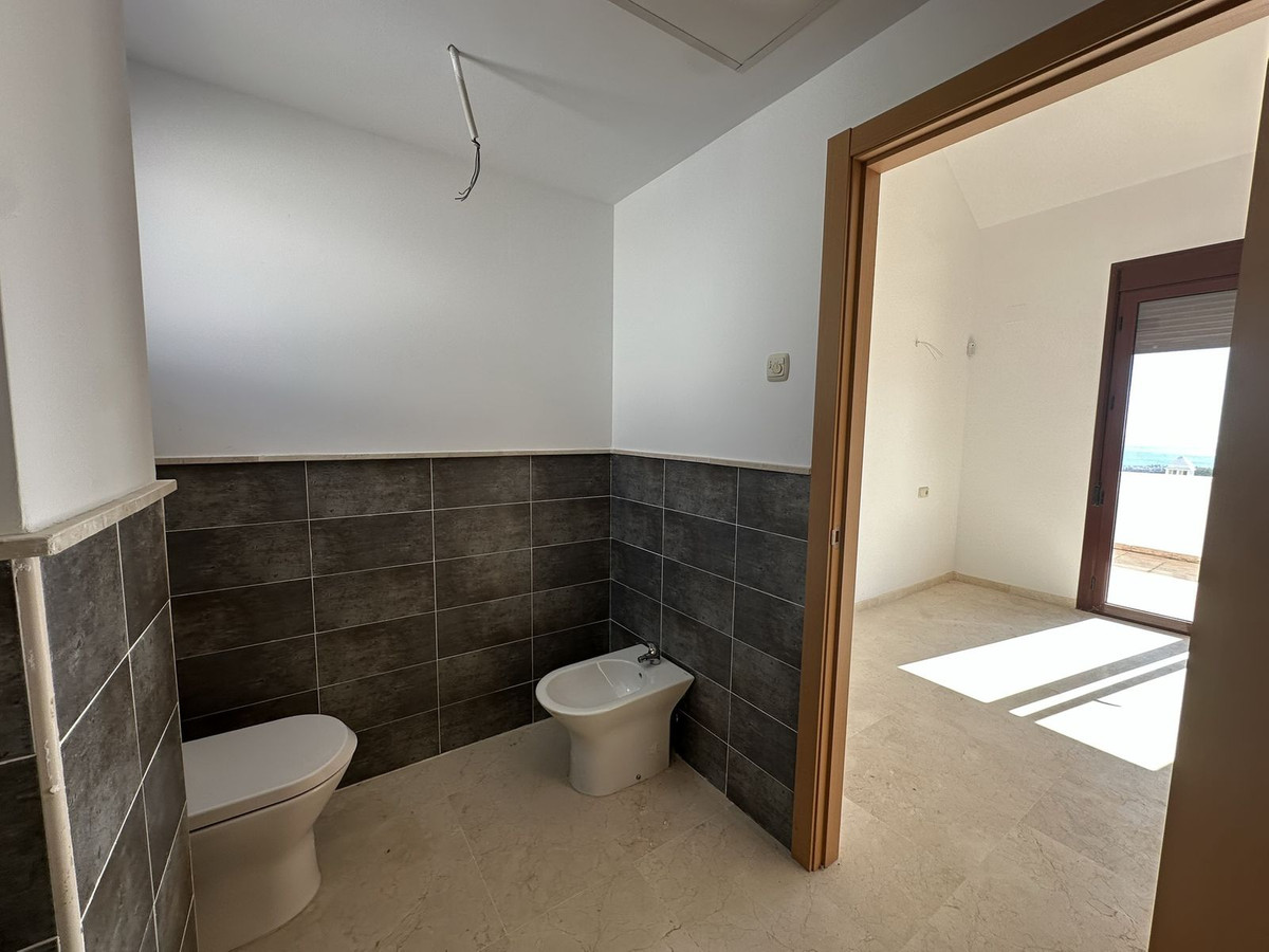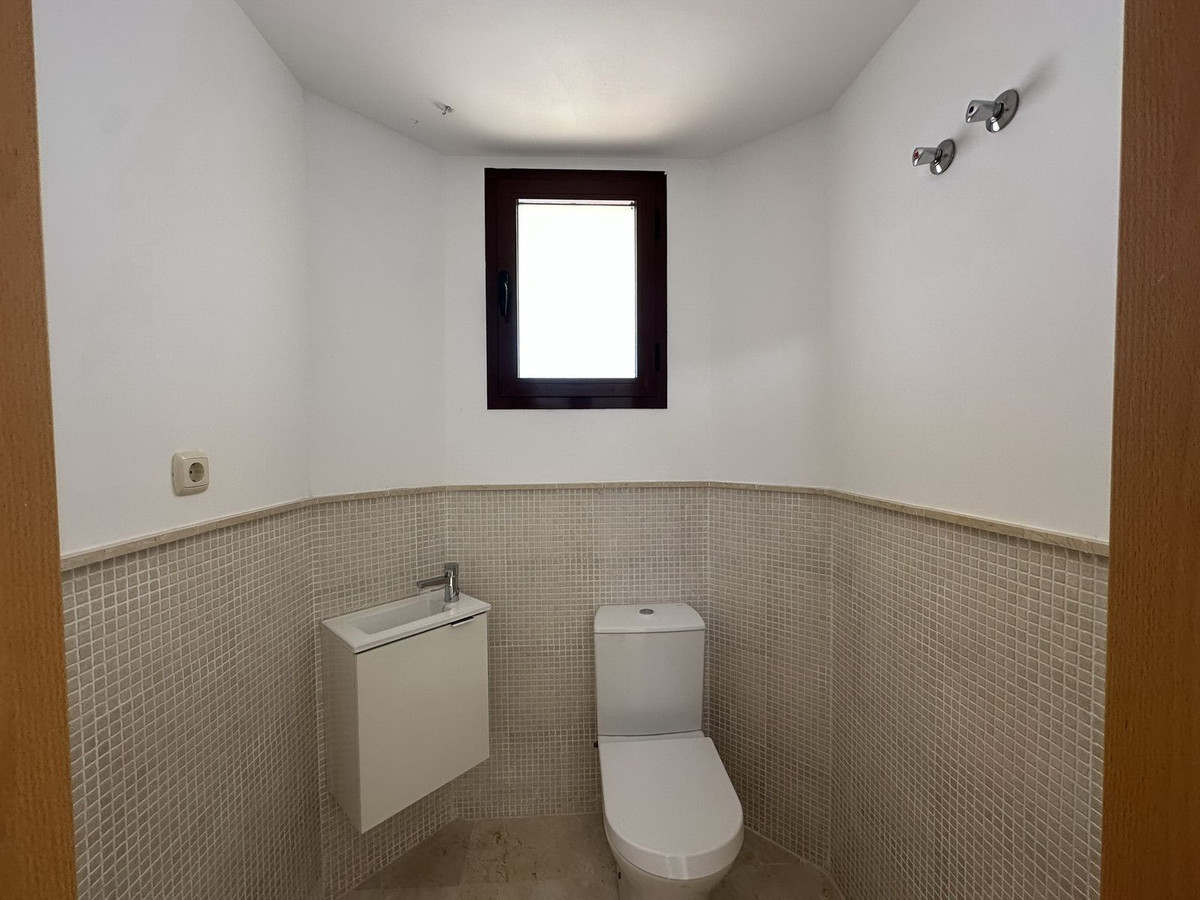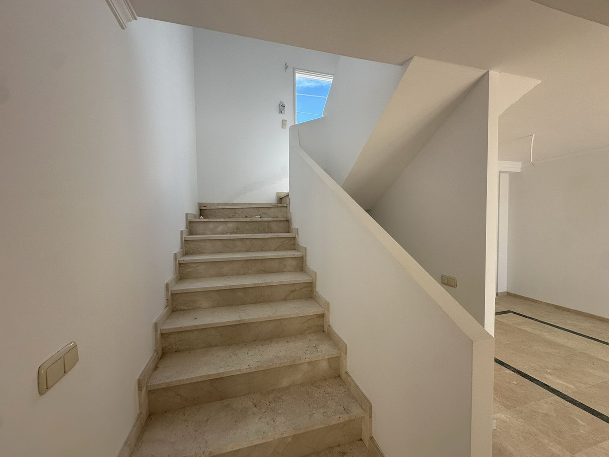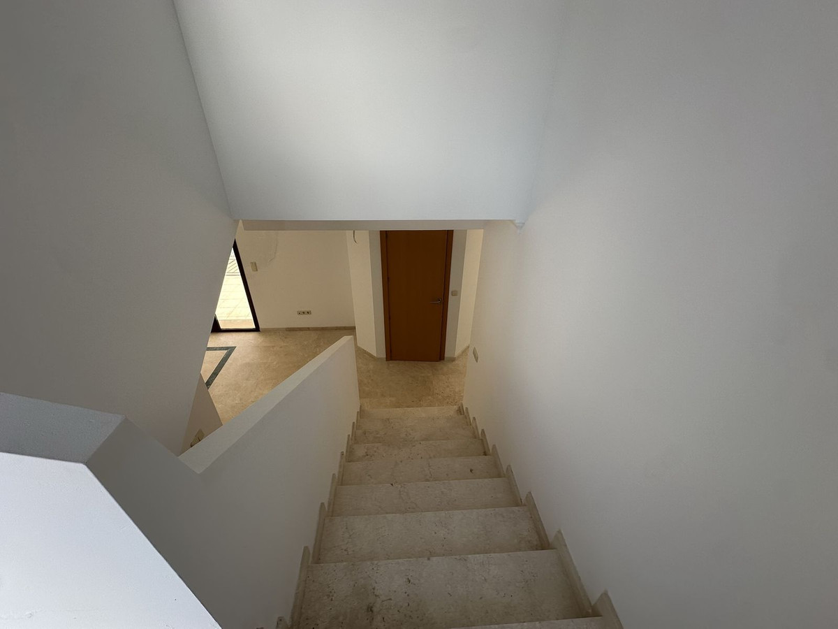 Første sal rummer soveafdelingen med entré, fordelingsgang, to soveværelser med indbyggede skabe og to komplette badeværelser, som sikrer privatliv og komfort. Derudover findes en stor åben terrasse, perfekt til at nyde Costa del Sols klima og den imponerende panoramaudsigt.