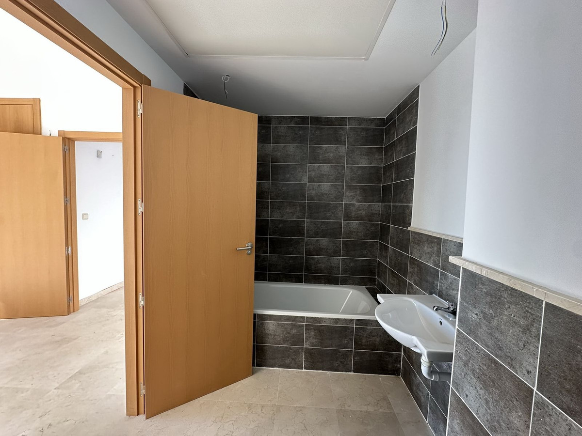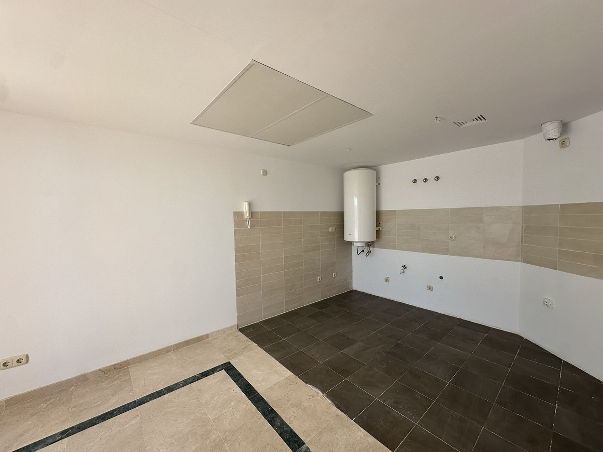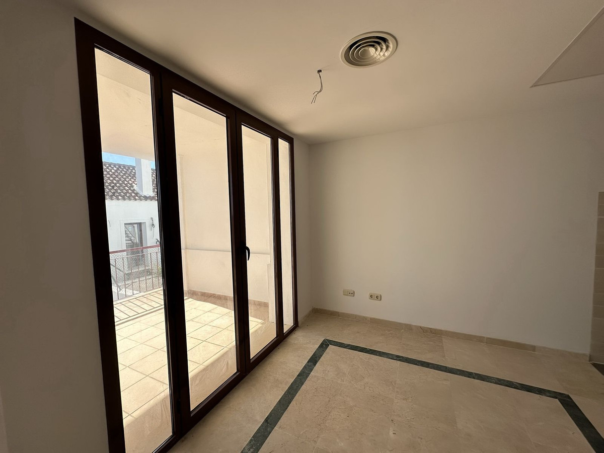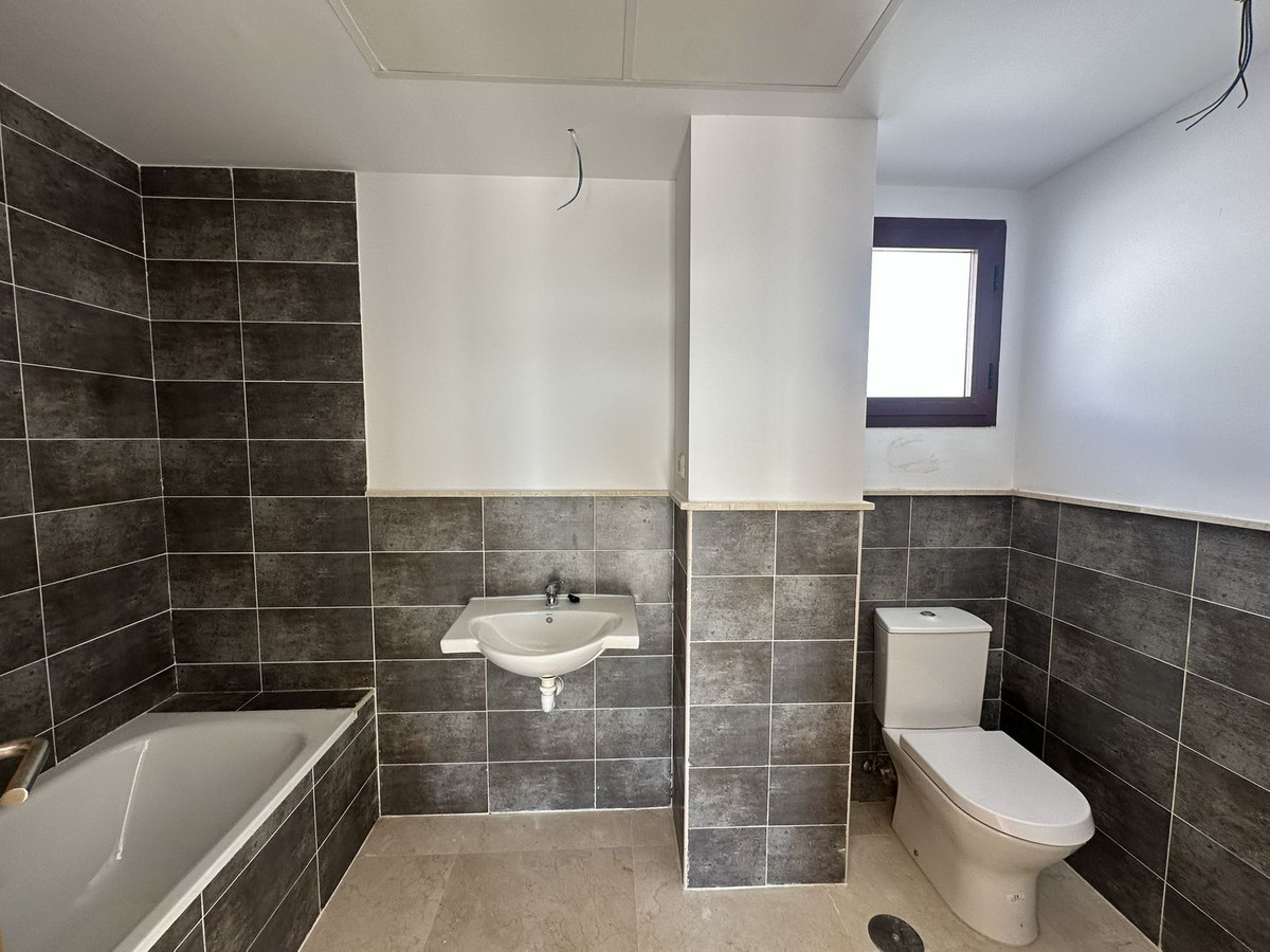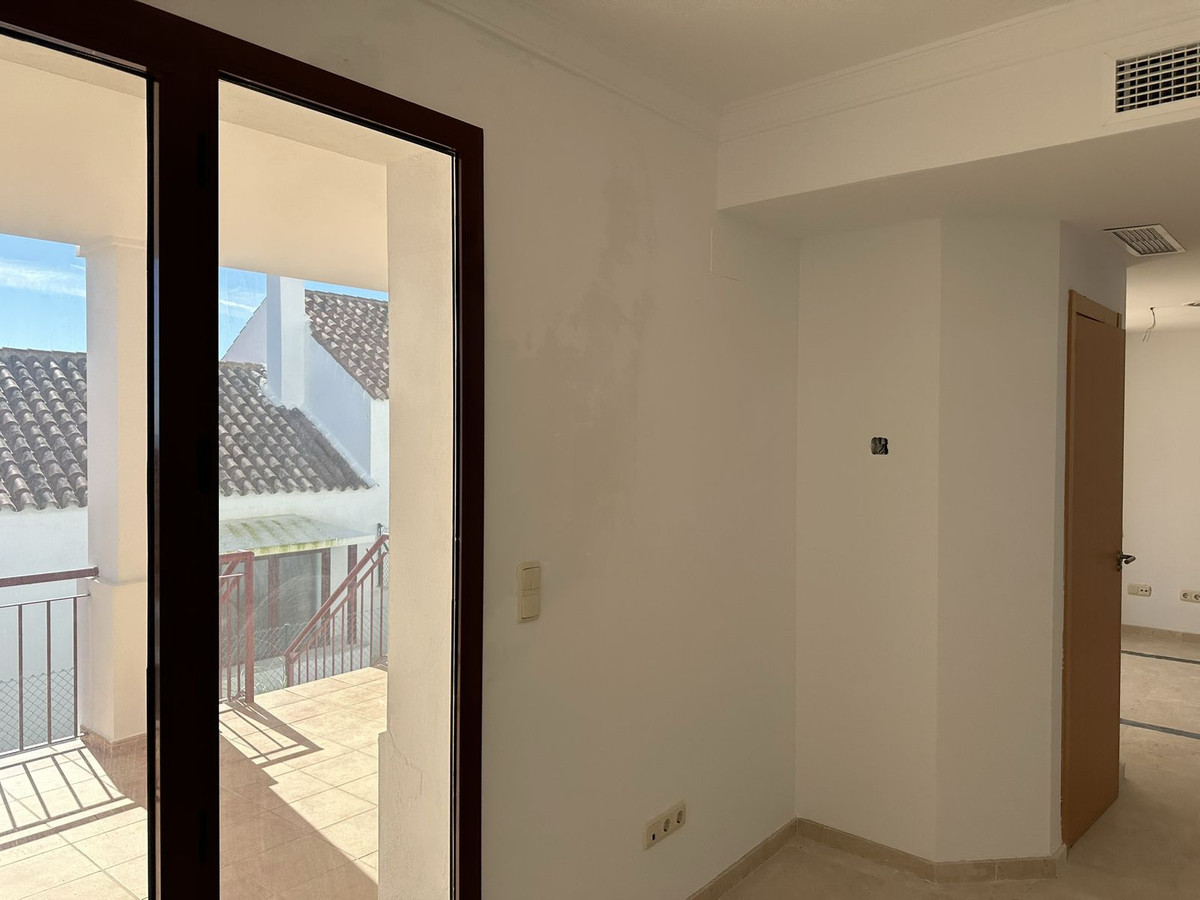 Første sal rummer soveafdelingen med entré, fordelingsgang, to soveværelser med indbyggede skabe og to komplette badeværelser, som sikrer privatliv og komfort. Derudover findes en stor åben terrasse, perfekt til at nyde Costa del Sols klima og den imponerende panoramaudsigt.