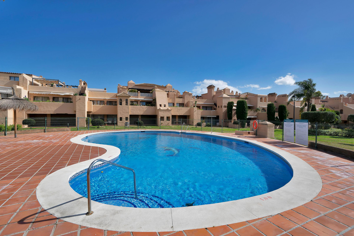Ground floor apartment located in the exclusive Cartuja del Golf community in Estepona, a property with excellent potential and a superb renovation opportunity to create a bespoke home in a well established residential setting surrounded by nature.