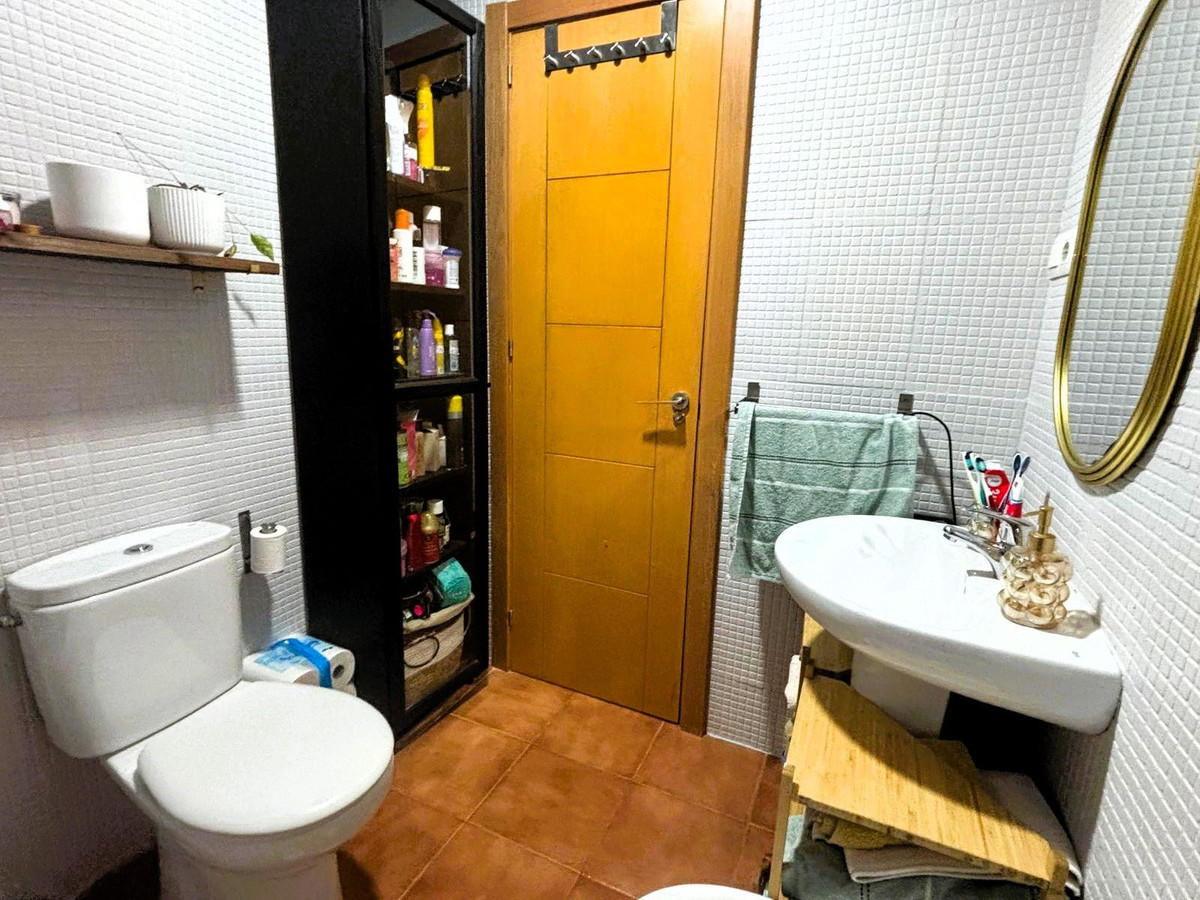 The property features a very practical and well-balanced layout. It offers three bedrooms, one full bathroom and a guest toilet. The kitchen is separate, fully equipped and benefits from natural ventilation; it can also be opened to the living room to create a more modern, open-plan space, enhancing light and a sense of openness. The living room is spacious and bright, with large windows that create a warm and welcoming atmosphere.