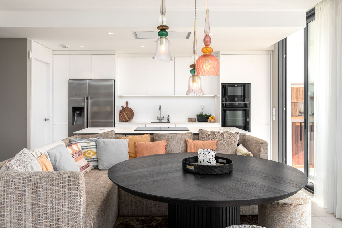 Denne unikke bolig er elegant møbleret med designermøbler af høj kvalitet og tilbyder 3 rummelige soveværelser, 2,5 badeværelser (et ensuite) og delvist gulvvarme.