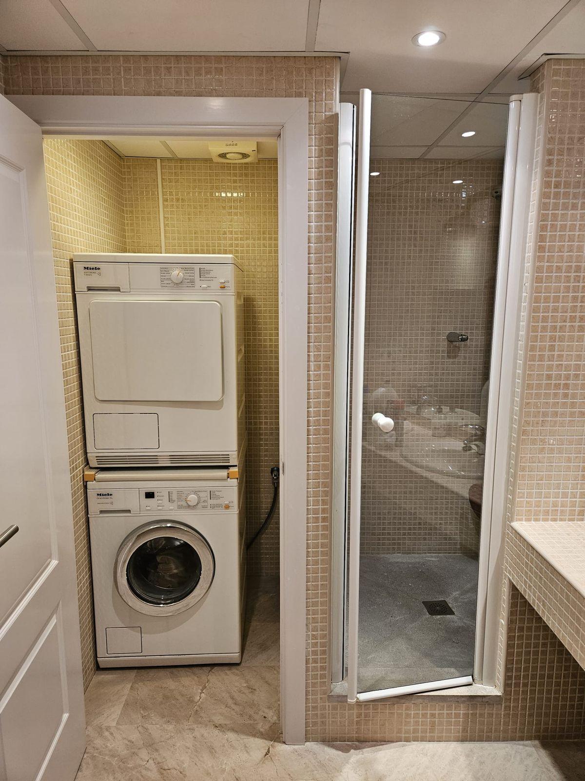 The spacious apartment offers three stylish bedrooms and two beautifully finished bathrooms. The generous living room with a fireplace creates a warm and inviting atmosphere, while the marble floors with underfloor heating and full air conditioning provide year-round comfort.