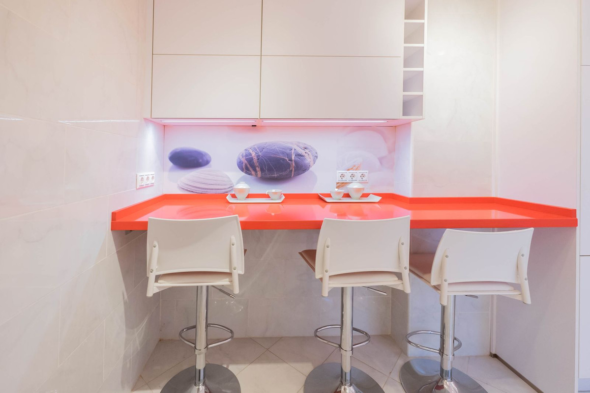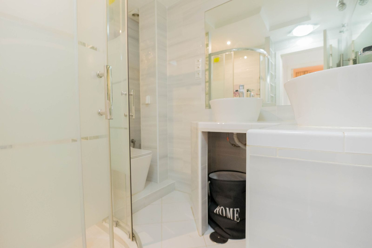 The apartment includes a cozy double bedroom and a single bedroom, perfect for resting or hosting guests. The kitchen is very modern and elegant, with all appliances included.