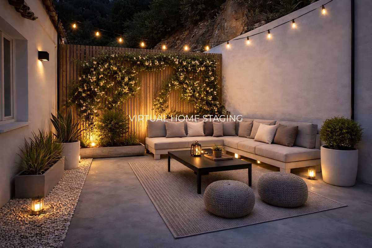 The property offers approximately 90 m² of terraces and patio space, ideal for outdoor dining, relaxation areas or a chill-out corner.