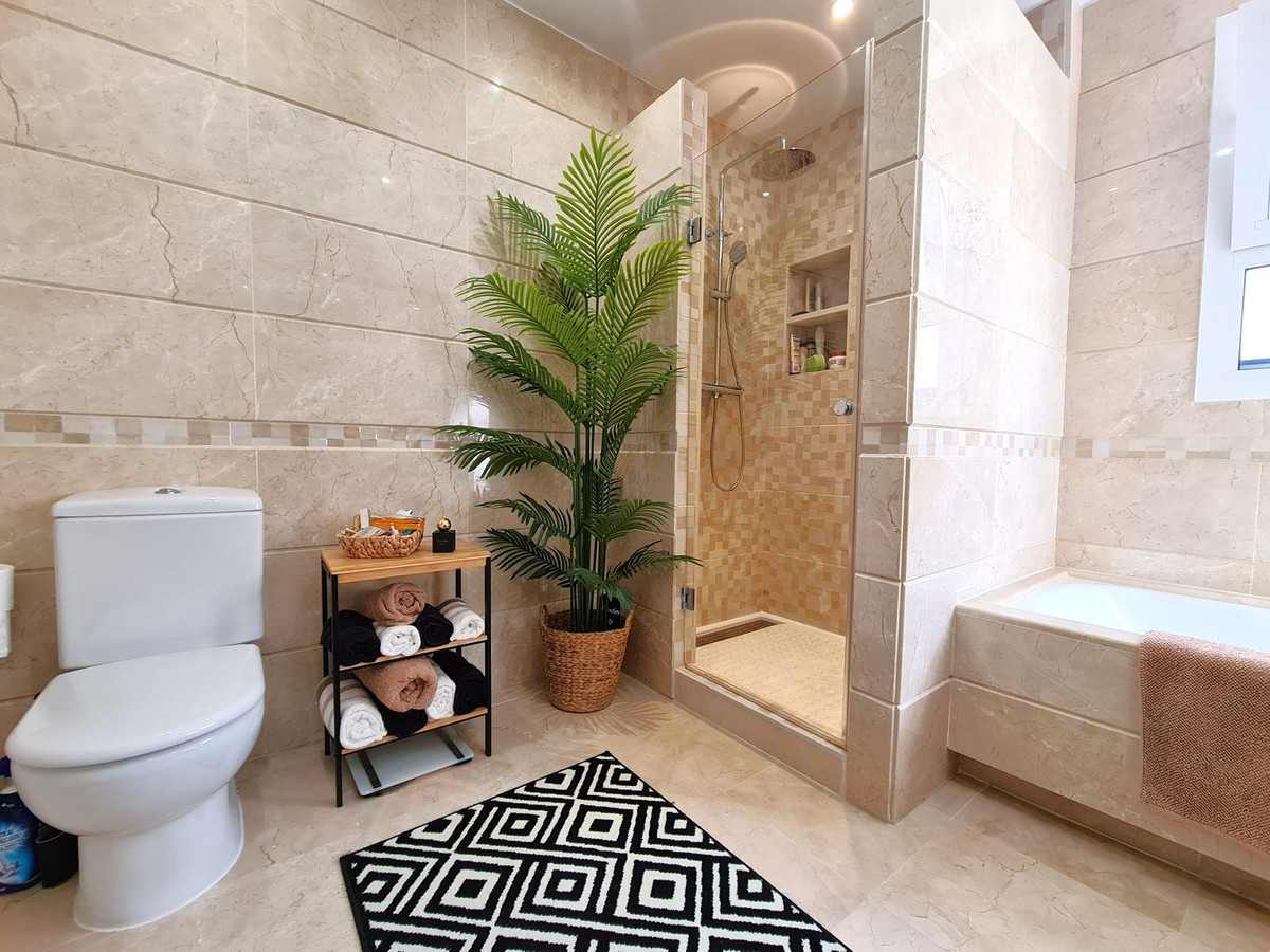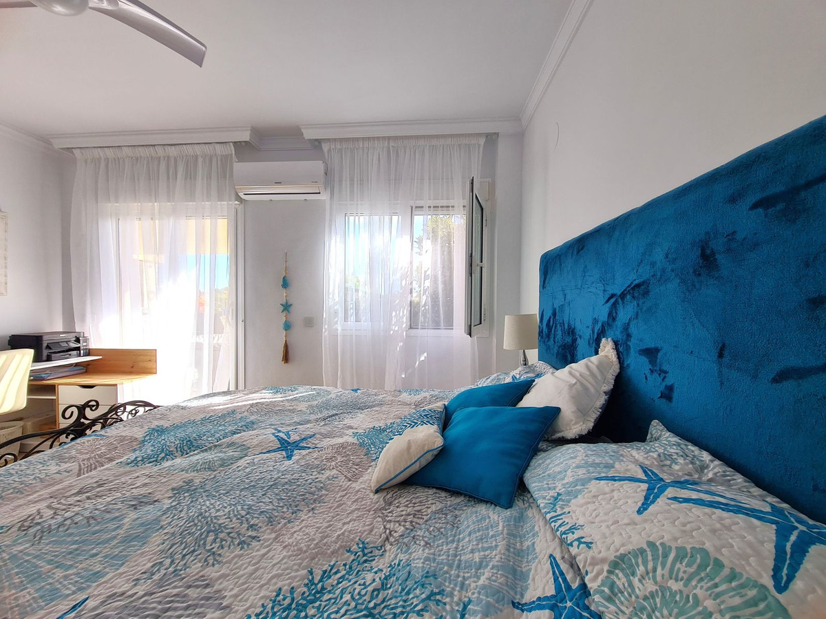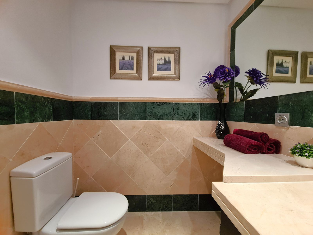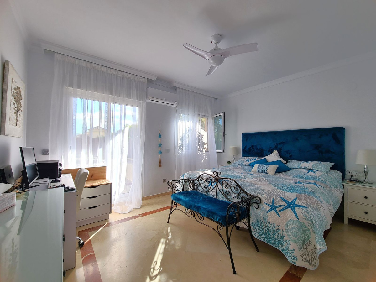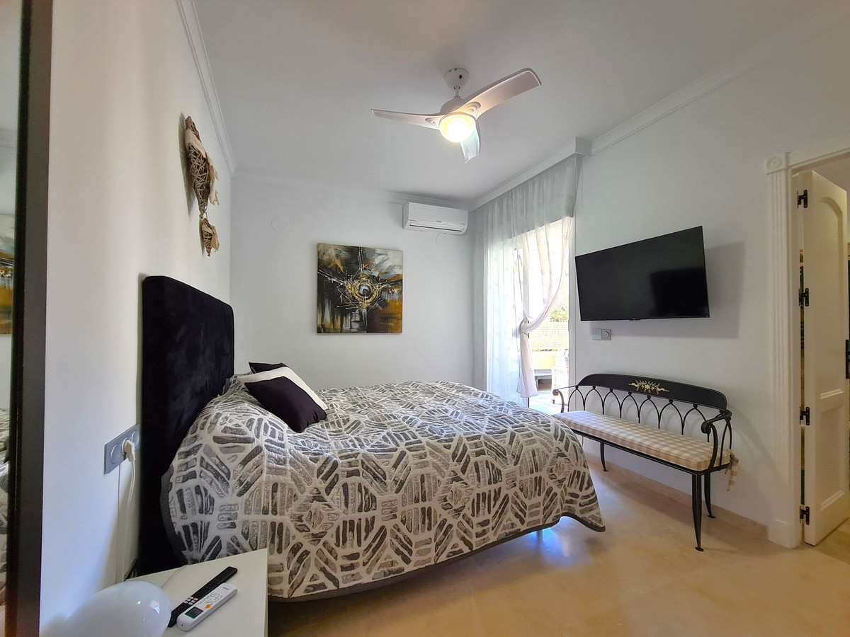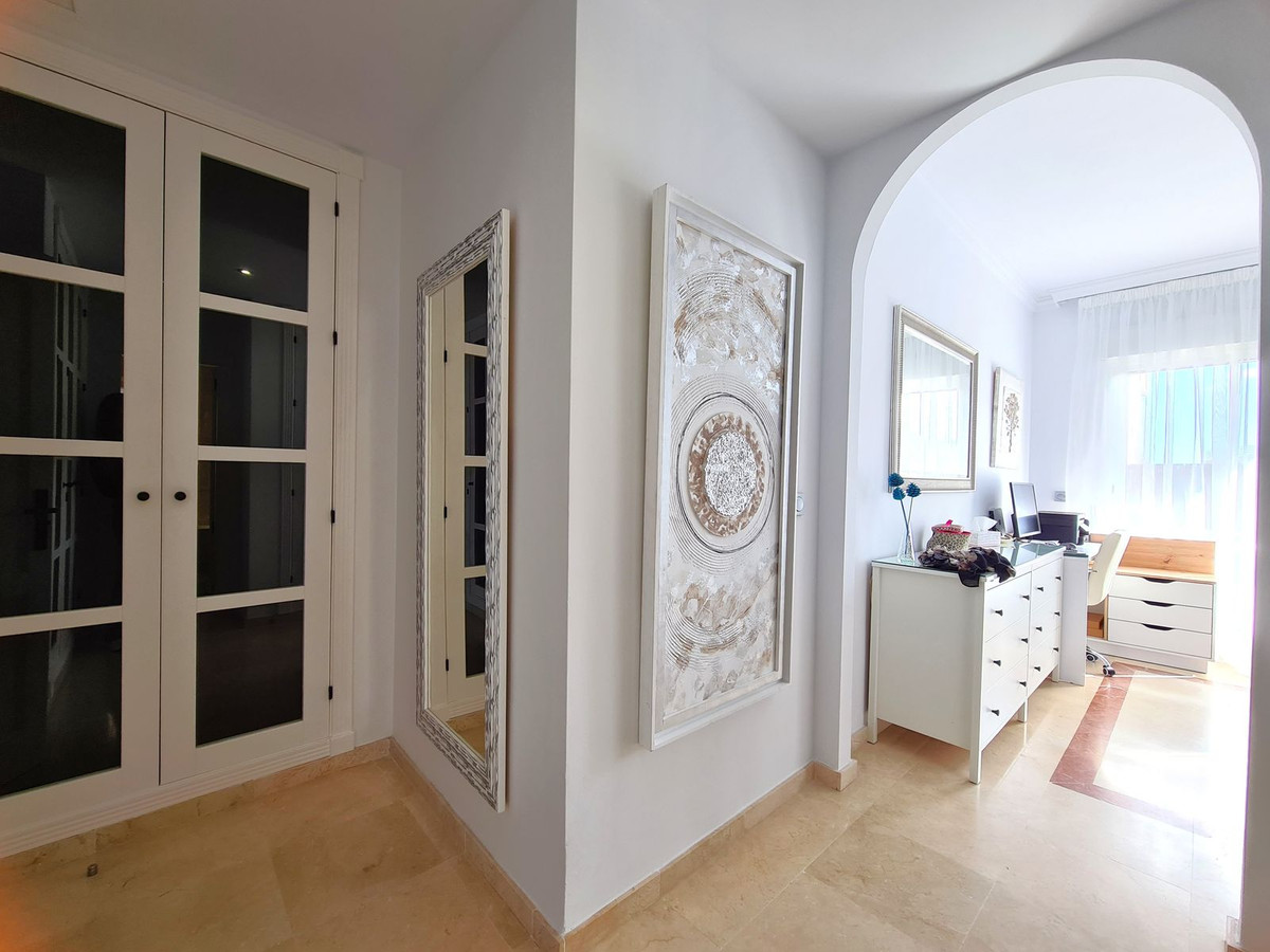 Beliggende i et fremragende boligkompleks kun få minutters kørsel fra Sotogrande Marina og Alcaidesa Strand. Tæt på supermarkeder, restauranter og butikker. Kun 16 km fra Gibraltar og lufthavnen og 95 minutters kørsel fra Malaga Lufthavn. Denne lejlighed i stueetagen har en rummelig entré, der fører til den lyse og luftige stue-spisestue med pejs og direkte adgang til den store, delvist overdækkede private terrasse og have. Det store, fuldt udstyrede køkken kan prale af nye apparater, moderne finish og en funktionel indretning, herunder et separat bryggers og et rummeligt spisekammer. Gangen fører til gæstetoilettet og de tre store soveværelser, alle udstyret med indbyggede skabe, aircondition, adgang til en anden terrasse og ensuite badeværelser. Alle soveværelser har vinduer, der giver rigeligt naturligt lys og ventilation. Ejendommen kan prale af bekvemmeligheden af to underjordiske parkeringspladser, to golfvognspladser og to opbevaringsenheder. Det lukkede område har 24-timers sikkerhed, fælles swimmingpools og haver samt et nyrenoveret klubhus. En fremvisning anbefales på det kraftigste!