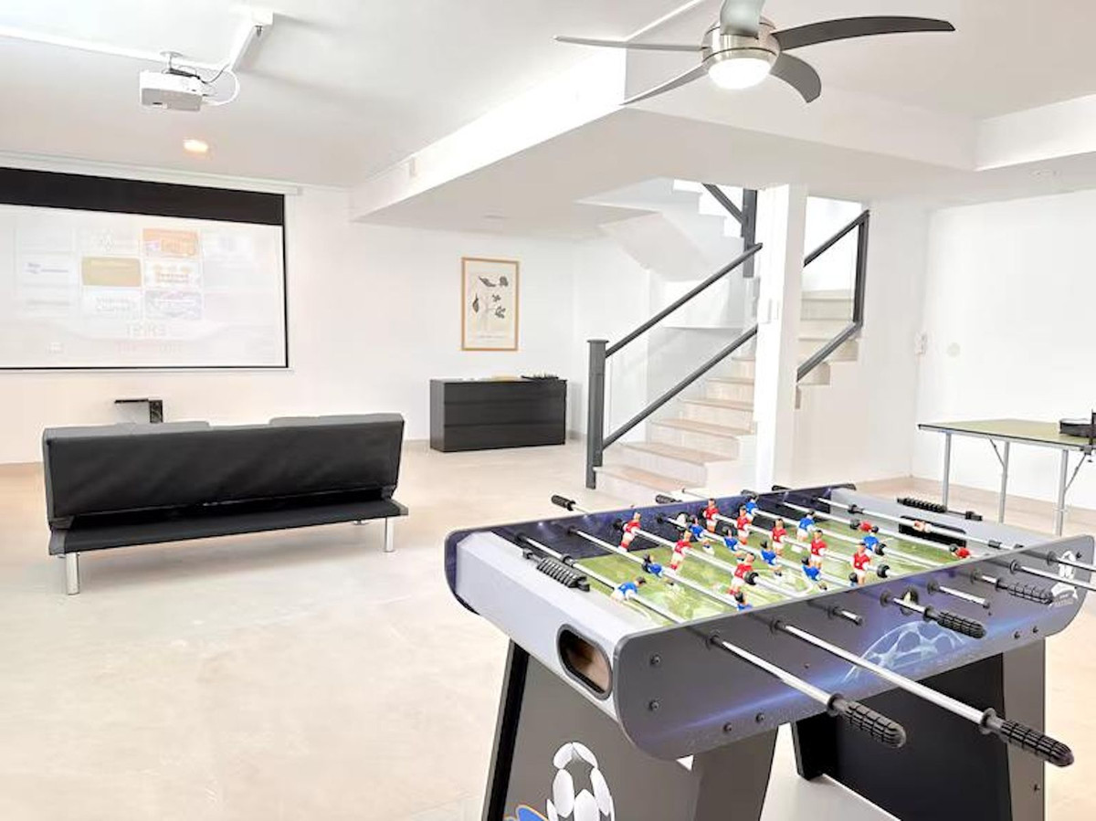 På nederste niveau er der et betydeligt, alsidigt område, der i øjeblikket er indrettet som biograf og spillerum, komplet med et komplet brusebad. Dette rum var oprindeligt designet til at blive omdannet til en selvstændig lejlighed med to soveværelser, køkken og badeværelse - VVS- og elinstallationer er allerede på plads. Derudover blev et område på 20 m² under den forreste terrasse planlagt som fitnesscenter.