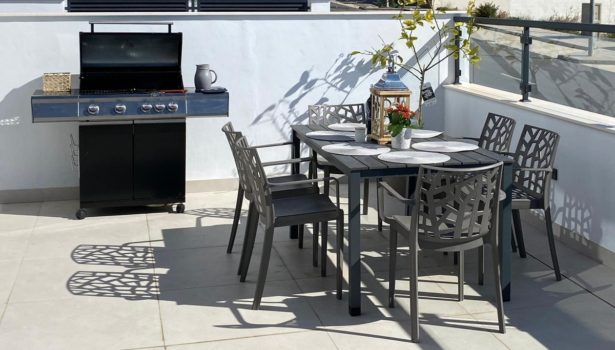 Villaen tilbyder næsten 200 m² bebygget areal fordelt på tre etager og har tre rummelige soveværelser og tre moderne badeværelser. Interiøret er lyst og gennemtænkt designet, hvilket skaber åbne, indbydende rum, der er ideelle til hverdagsbrug samt til at være vært for familie og venner. Øverst er der en rummelig tagterrasse, der giver de perfekte rammer til at nyde solen og beundre uforglemmelige middelhavssolnedgange.