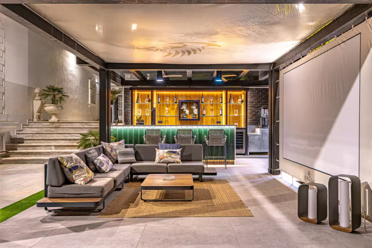 • Outdoor lounge with bar and cinema screen