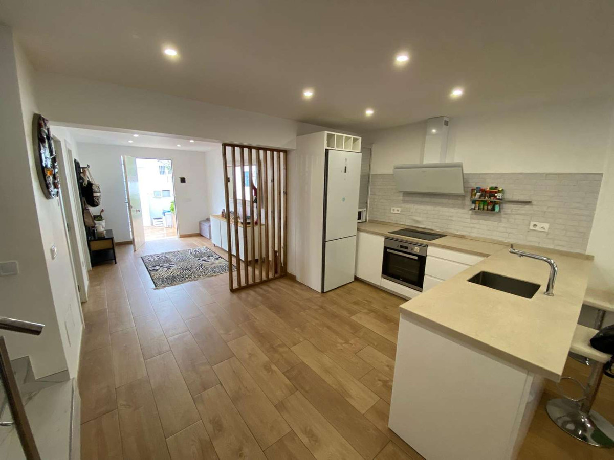 Excellent semi-detached villa for sale in Los Boliches. It sits on a 122 m² plot and has 135 m² of living space. The property features 4 bedrooms and 2 bathrooms, distributed as follows: the ground floor comprises an open-plan entrance hall, living-dining room, and kitchen, plus an additional bedroom (currently used as an office), a bathroom, and a storage room. The upper floor comprises 3 bedrooms and 1 bathroom. The ground floor also includes a terrace at the entrance and another accessible from the living room. The location is superb, with all amenities nearby and excellent access to the motorway. There are no community fees.
