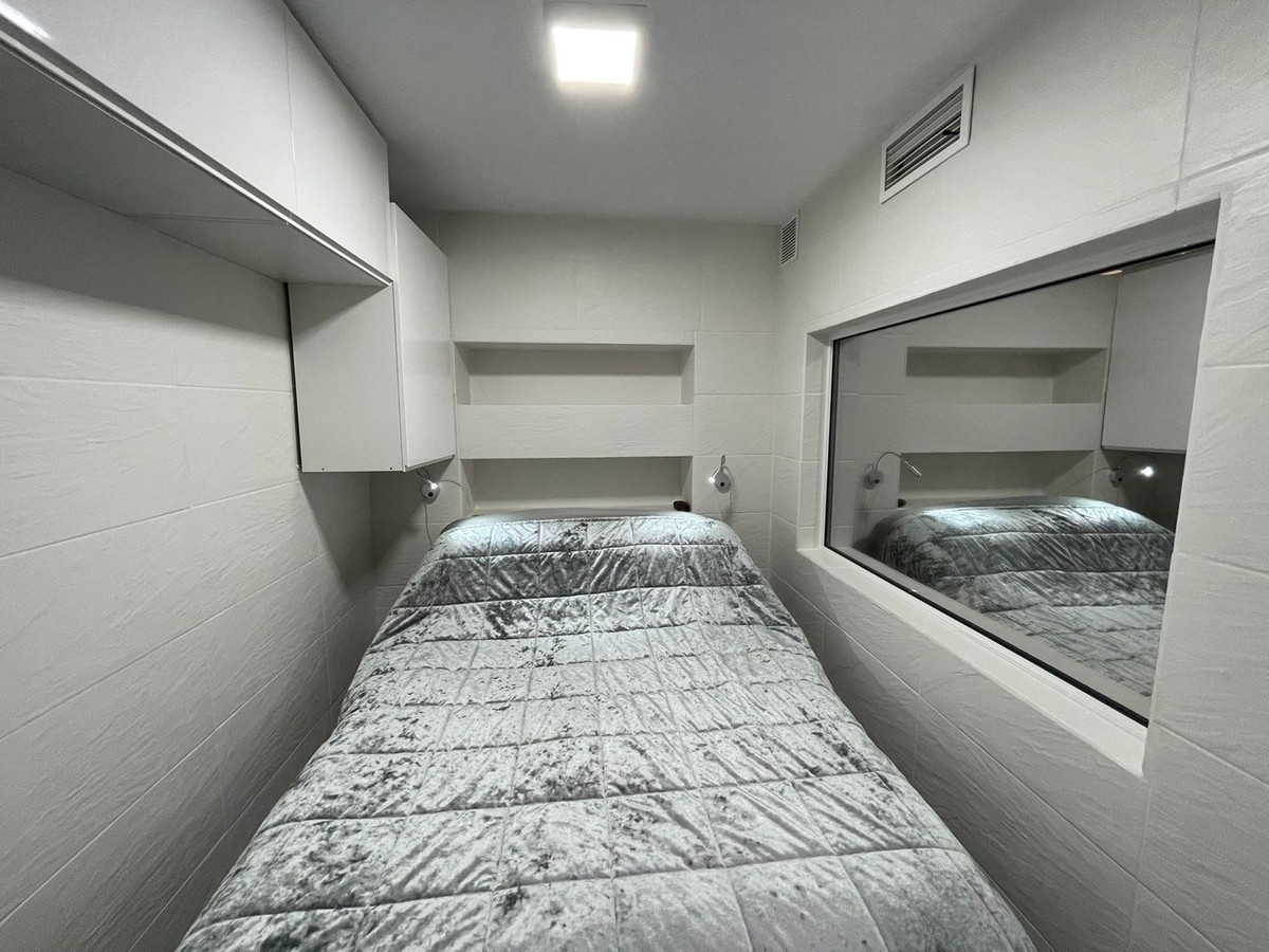 Access is via a staircase leading to the entrance, which opens into a small hallway. To the left is the bedroom with fitted storage, while directly opposite you’ll find a contemporary bathroom complete with a walk-in shower. There is also a practical storage area within this section of the apartment.