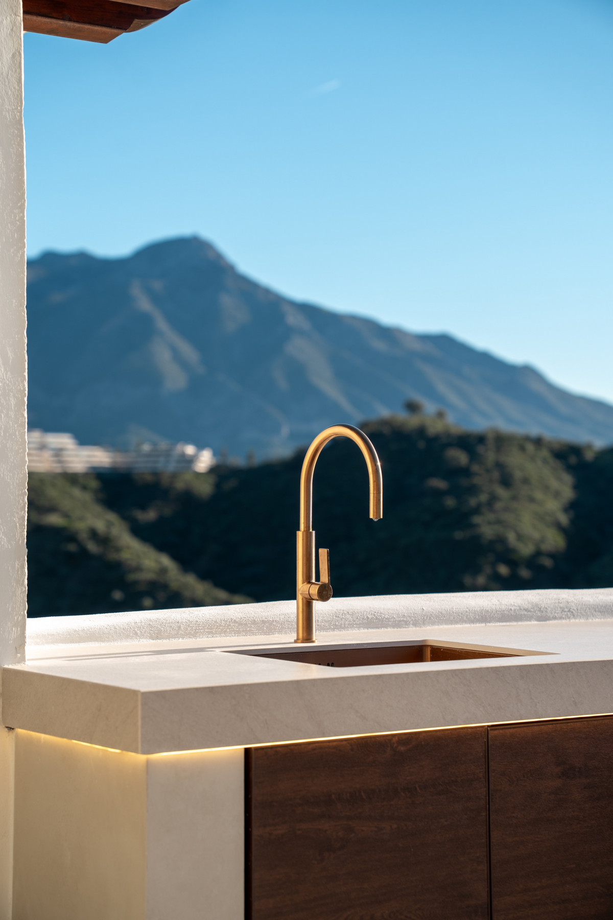 This south-facing residence enjoys all-day sunshine and uninterrupted open views stretching across the Mediterranean coastline, with the iconic La Concha mountain forming a spectacular backdrop.