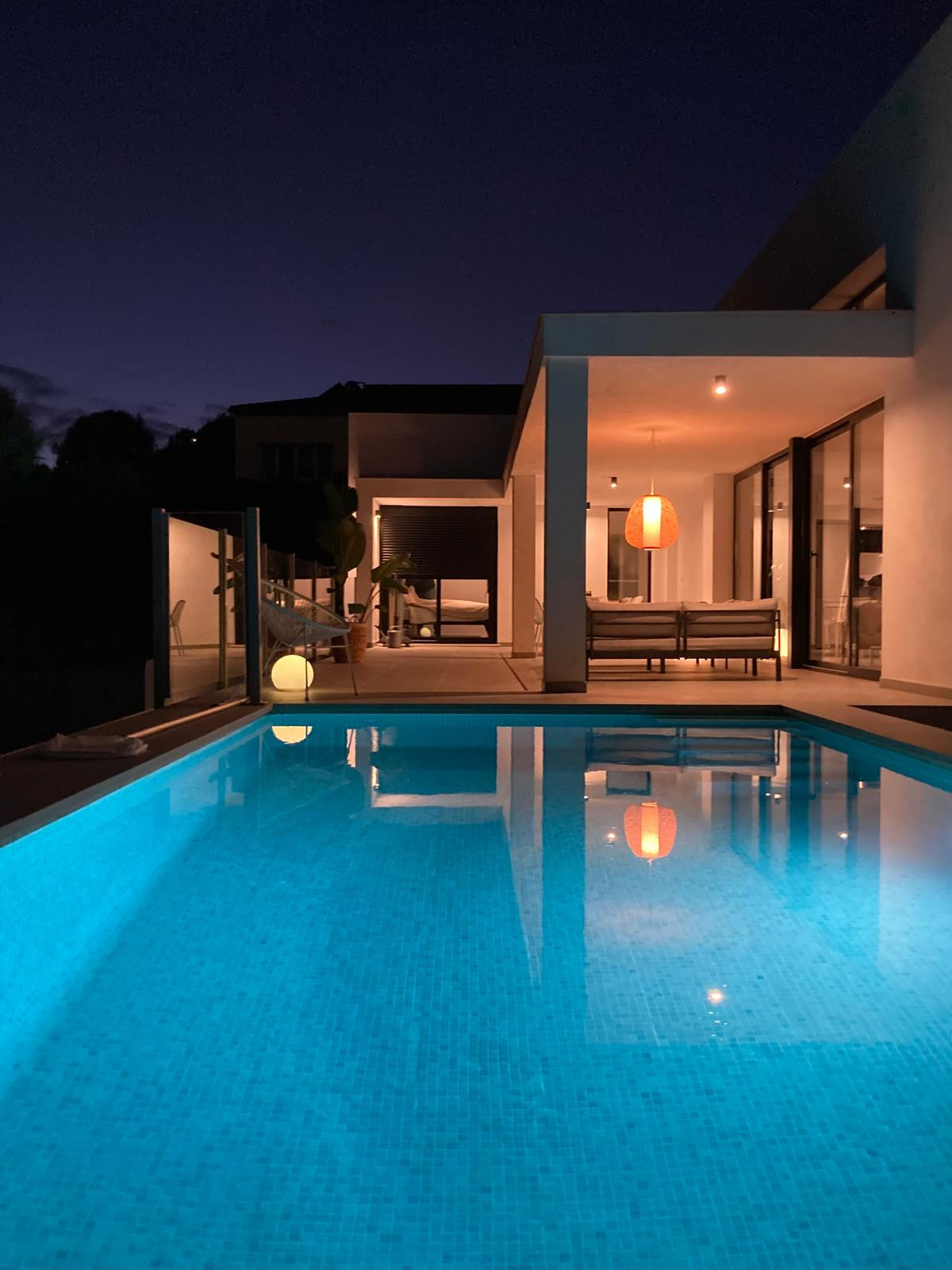 Outside, a private pool and landscaped garden create a relaxing atmosphere. The mature garden is designed for very easy maintenance and includes an automated irrigation system, allowing you to enjoy the outdoor space with minimal effort. Several terraces provide ideal areas for dining, entertaining, or simply relaxing in the sun.