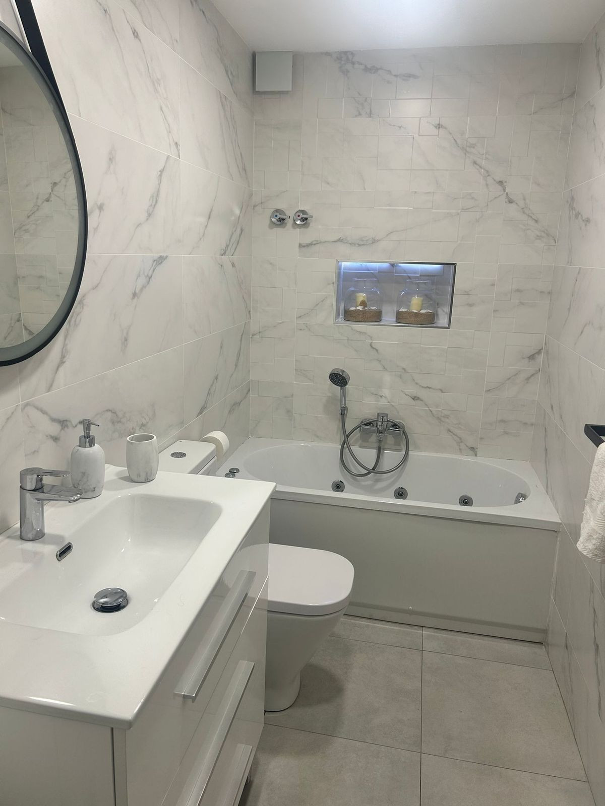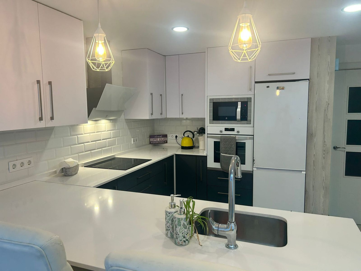 Recently renovated townhouse in Arroyo de la Miel, offering modern comfort and spacious living throughout. The property features three bedrooms, including a master with dressing area and another with fitted wardrobes. There are two fully equipped bathrooms, one with a hydromassage bathtub and the other with a walk-in shower. The stylish kitchen has been refurbished with a peninsula and Silestone worktops. A double-height storage room provides excellent additional space. Air conditioning with heat pump is installed throughout, plus a fireplace in the living room. Enjoy private front and rear patios, security shutters, reinforced door, and no community fees.