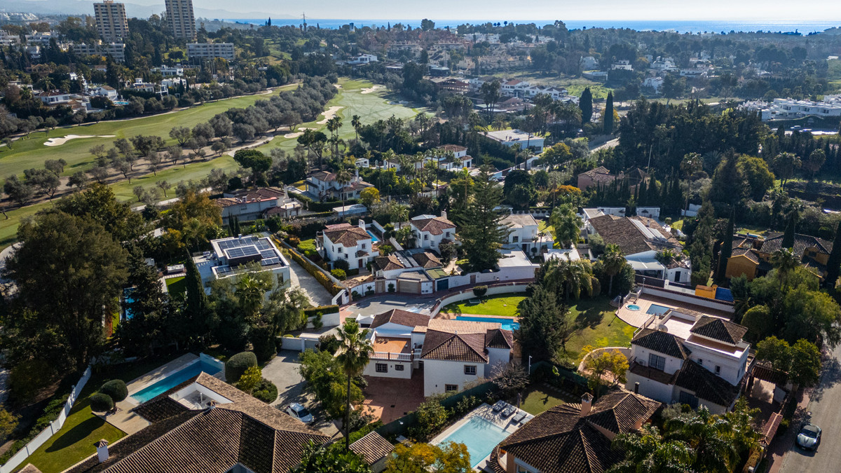 This home is a 4 bedroom 4 bathroom villa set on a large 1000sqm plot in one of the most prestigious areas of Nueva Andalucía. The home overlooks Las Brisas Golf and enjoys open views to La Concha. It offers a private pool, landscaped garden and a three car garage. Located in a quiet cul de sac, this luxury villa is within walking distance to restaurants, shops and top amenities. This is a perfect family home in a prime Marbella golf location.