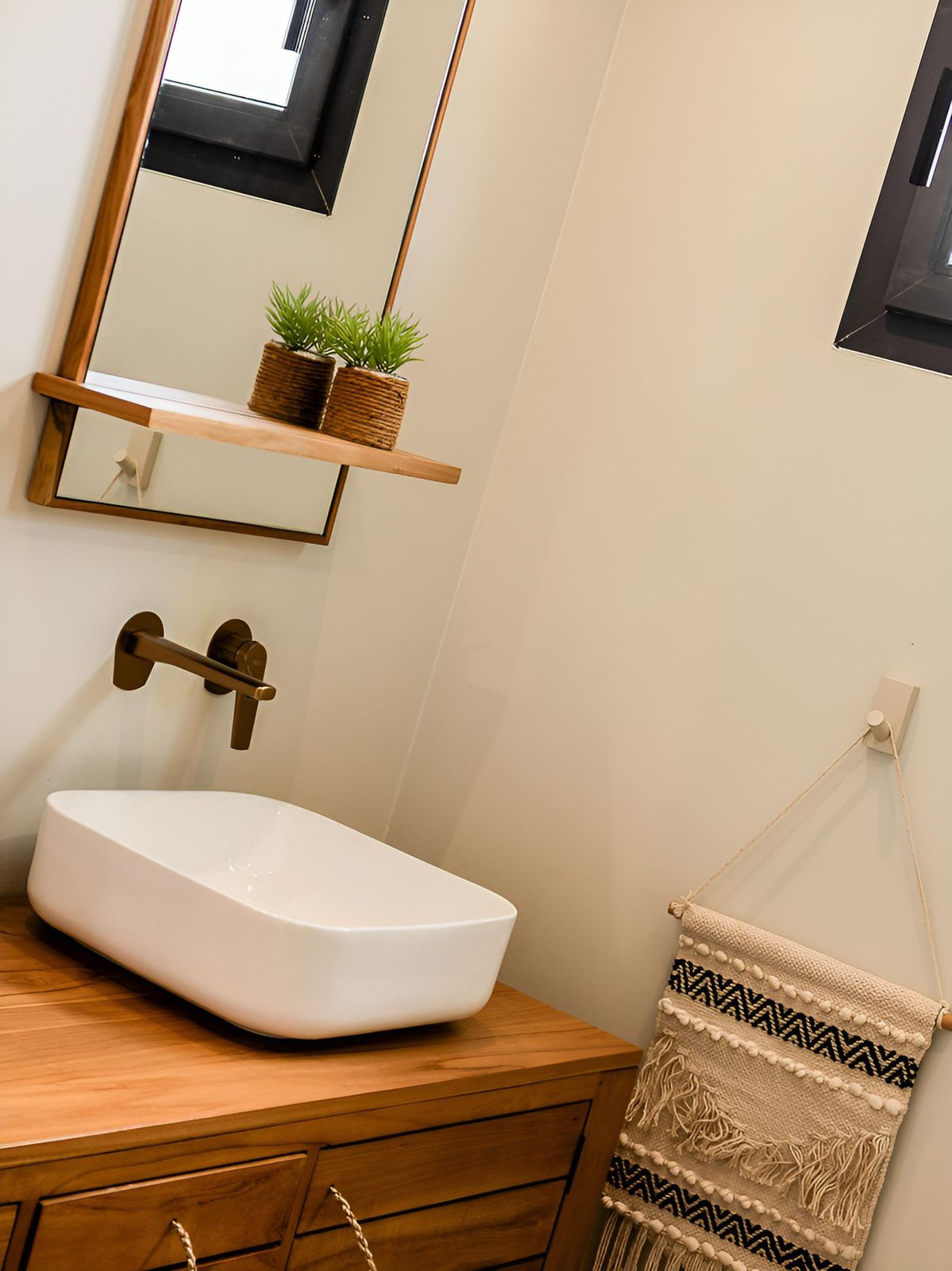 The main house, built in the Ibizan style, stands out for its brightness and open-plan design: an integrated living room and kitchen that connect directly to a terrace facing the garden area, where you will find the private swimming pool and a fantastic outdoor kitchen, ideal for enjoying the climate all year round.