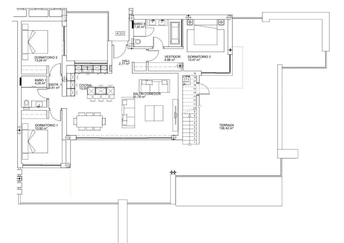 This penthouse includes: