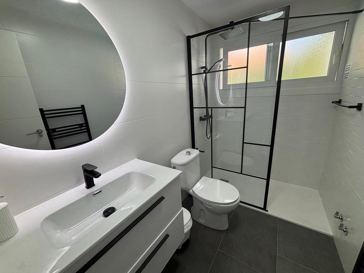 On the main level, you are welcomed by a bright and airy open-plan living and dining space, finished with elegant marble floors. The fully fitted kitchen, complete with a breakfast bar, leads directly onto a covered terrace featuring a built-in barbecue area — ideal for outdoor dining and entertaining throughout the year.