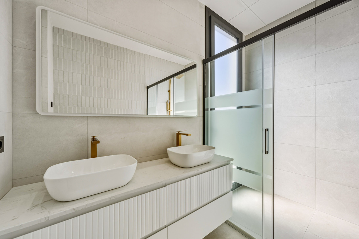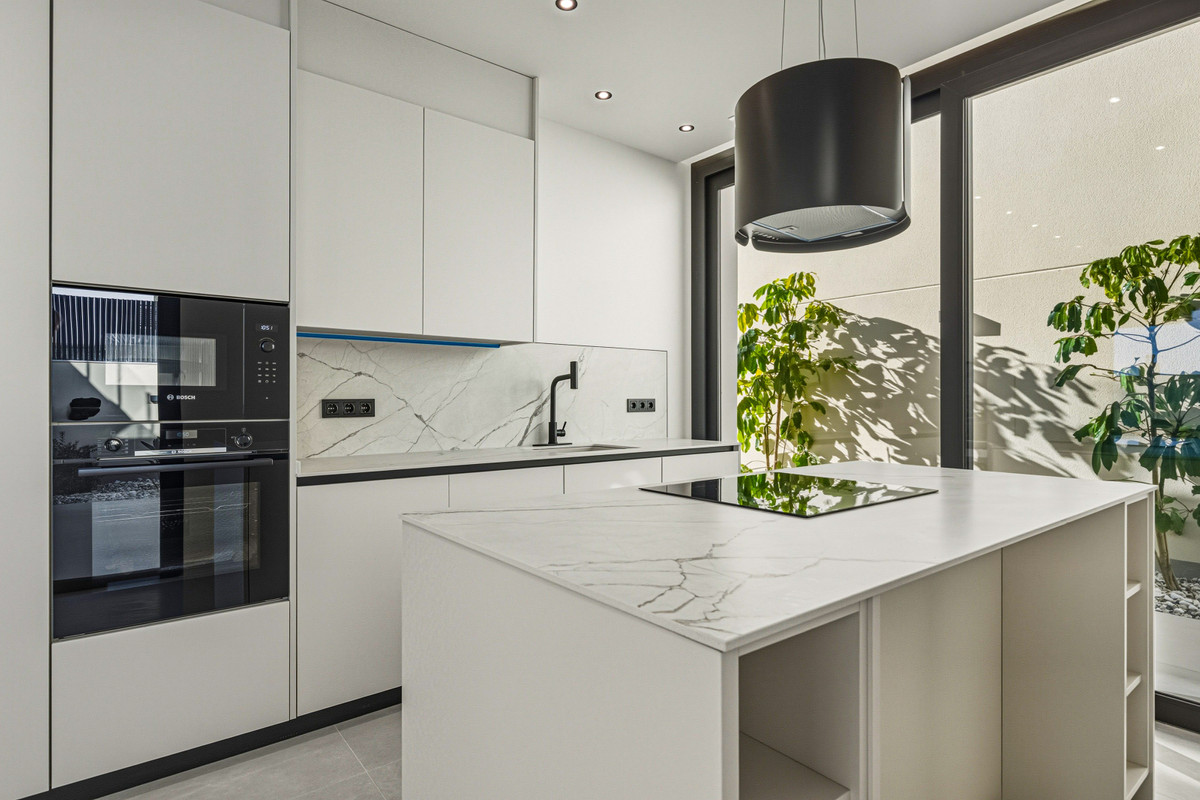 Beliggende i de rolige bjerge i Polop tilbyder denne sofistikerede villa en perfekt kombination af moderne minimalistisk design og fredelige naturlige omgivelser. Boligen er opført med avanceret armeret betonteknologi for langvarig holdbarhed og har sømløse arkitektoniske detaljer såsom specialfremstillede planforsænkede døre, der fremhæver de elegante indvendige linjer. Stueetagen udgør hjemmets hjerte, hvor et åbent opholdsrum og et eksklusivt køkken med naturstensfinish forbindes ubesværet med en pergoladækket terrasse og en privat saltvandspool.