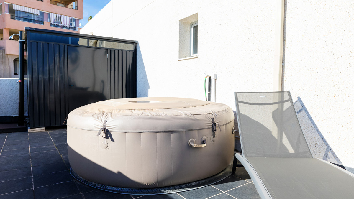 The community offers high-quality facilities, including a gym, spa, and heated swimming pool. The apartment is conveniently located close to all amenities such as shops and restaurants, and is only 7 minutes from the beach.