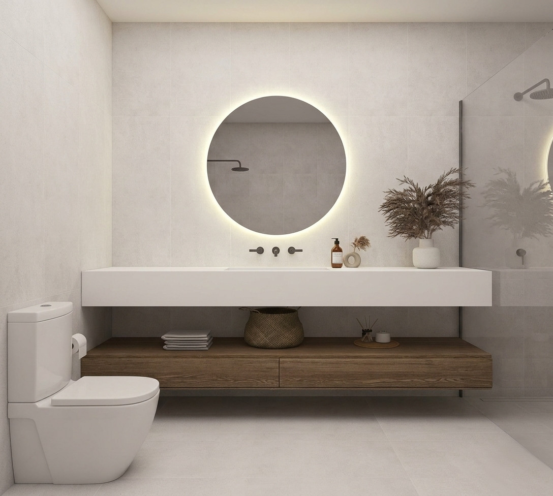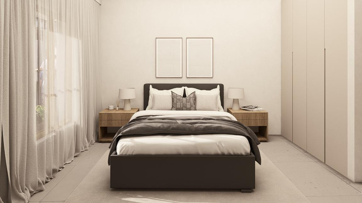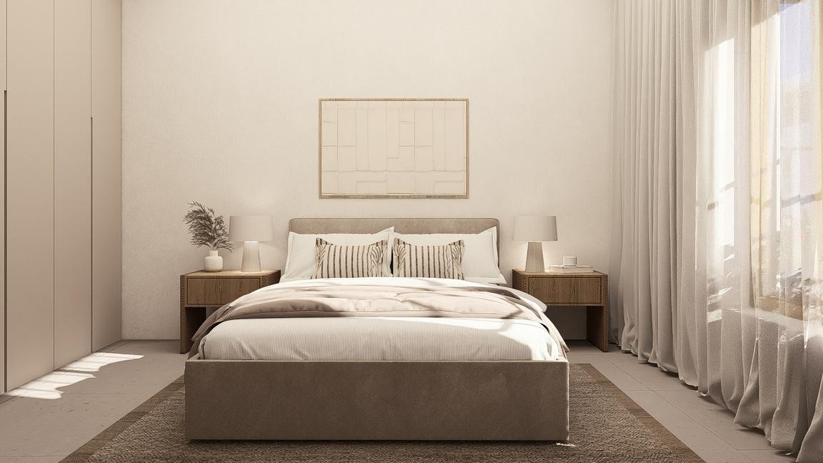 The project blends a contemporary interpretation of Andalusian architecture with a modern, refined design. The palette of neutral tones, warm whites, and natural wood creates an elegant and timeless aesthetic.