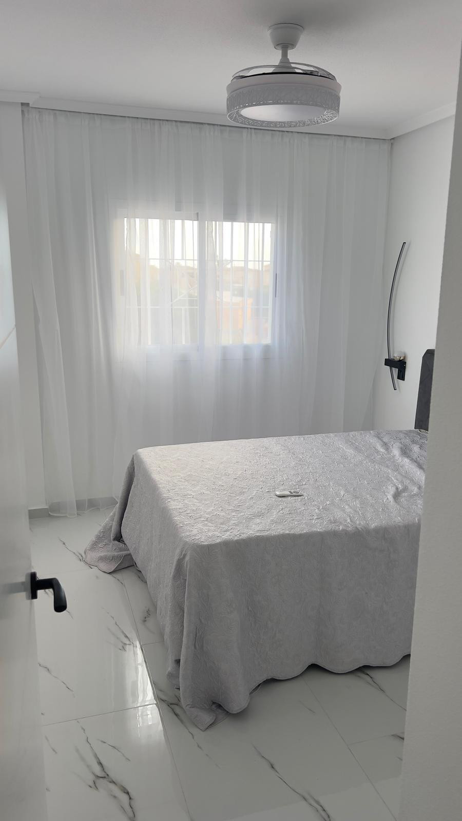 This beautifully renovated 1-bedroom, 1-bathroom penthouse is perfectly located in the highly sought-after area of Playa Flamenca, within the desirable Zenia Star 1 urbanization. With a bright, open design, the property offers a modern and stylish living space, designed for comfort and convenience. The apartment enjoys a sunny south-facing orientation, allowing plenty of natural light to flow in throughout the day, and boasts wonderful sea views that can be enjoyed from the main living room and terrace.The home has been completely renovated to a high standard, combining contemporary finishes with practical design. The open-plan kitchen and living room create a cozy atmosphere, ideal for relaxing or entertaining guests. An independent laundry room adds additional functionality, while a private storage room provides extra space for personal belongings.Residents of Zenia Star 1 benefit from access to a well-maintained communal pool and garden area, perfect for cooling off or enjoying the warm Mediterranean climate. The location is unbeatable, situated within walking distance of all local amenities, including supermarkets, cafes, restaurants, and the popular Playa Flamenca Shopping Center. The famous La Zenia Boulevard shopping center is a short walk away, offering a wide range of shops, dining options, and entertainment.For beach lovers, the beautiful sandy Mediterranean beaches are just a 5-minute drive away, including the award-winning beaches of Playa Flamenca and La Zenia. Families will also appreciate the convenience of having the local Spanish school just 50 meters from the property.