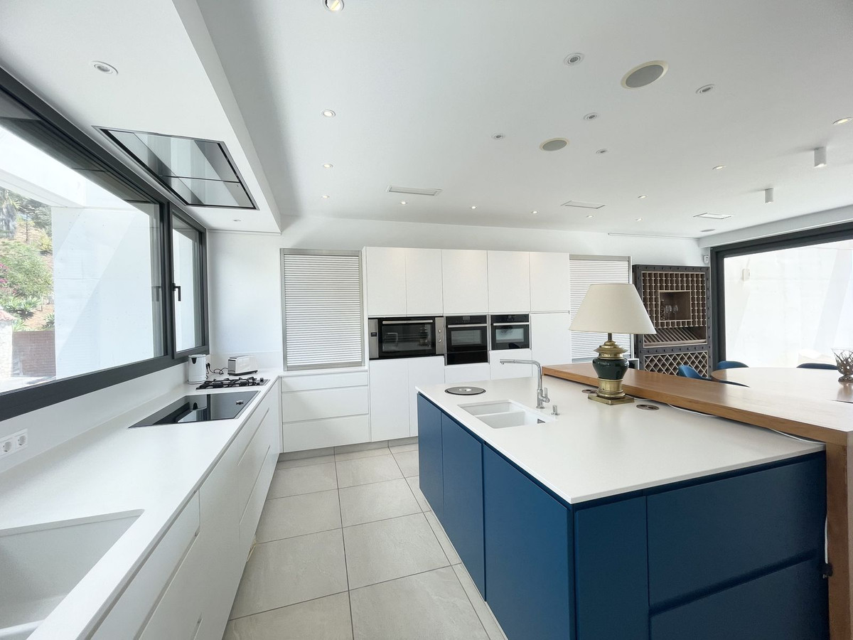 Set on a generous 1,718 m² plot, the villa welcomes you with a sense of harmony and exclusivity. A lush Japanese garden with a serene pond provides complete privacy and a peaceful retreat. Thanks to its privileged southwest orientation, the property enjoys spectacular sunsets and breathtaking views of both the mountains and the Mediterranean Sea. The outdoor area is designed for relaxation as well as entertaining, featuring a refreshing swimming pool, spacious terraces, a pergola, a fully equipped outdoor kitchen with barbecue, and a cozy lounge area. A charming wine cellar adds the perfect touch for memorable evenings with family and friends.