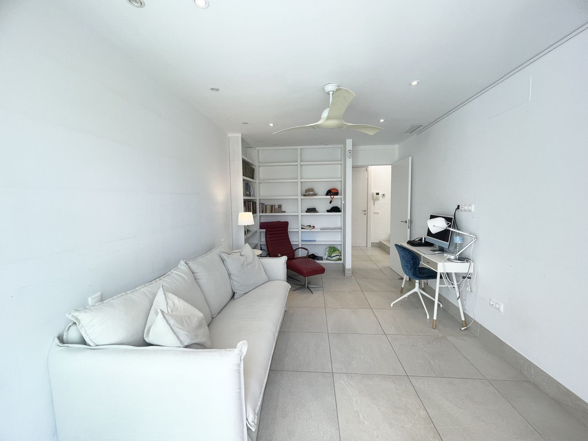 On the entrance level, you will find 4 spacious bedrooms, all offering wonderful views of the surrounding landscape. Three of the bedrooms have direct access to the terrace, and there are 3 elegant bathrooms with underfloor heating, one of which is shared between two bedrooms. This level also includes a practical utility room with laundry facilities and access to the parking area, as well as a convenient lift connecting to the upper floor.
