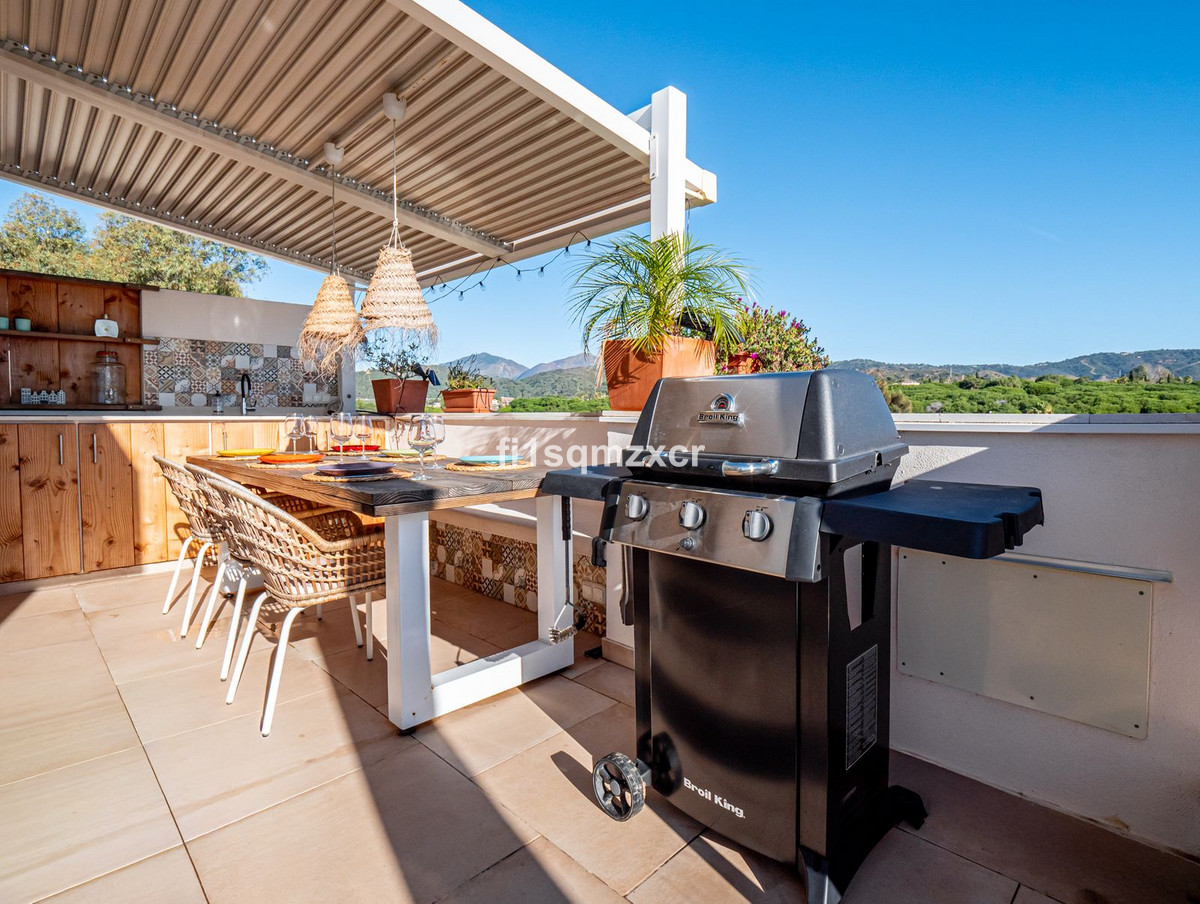 The L-shaped roof terrace is a delight to relax on. It features an outdoor kitchen with an induction cooktop, refrigerator, and a second dishwasher. The washing machine and dryer are also installed here. Pergola. On the slightly elevated platform, an L-shaped lounge sofa has been created, offering endless opportunities to enjoy the stunning views. You can see the dolphins jumping right in front of you...