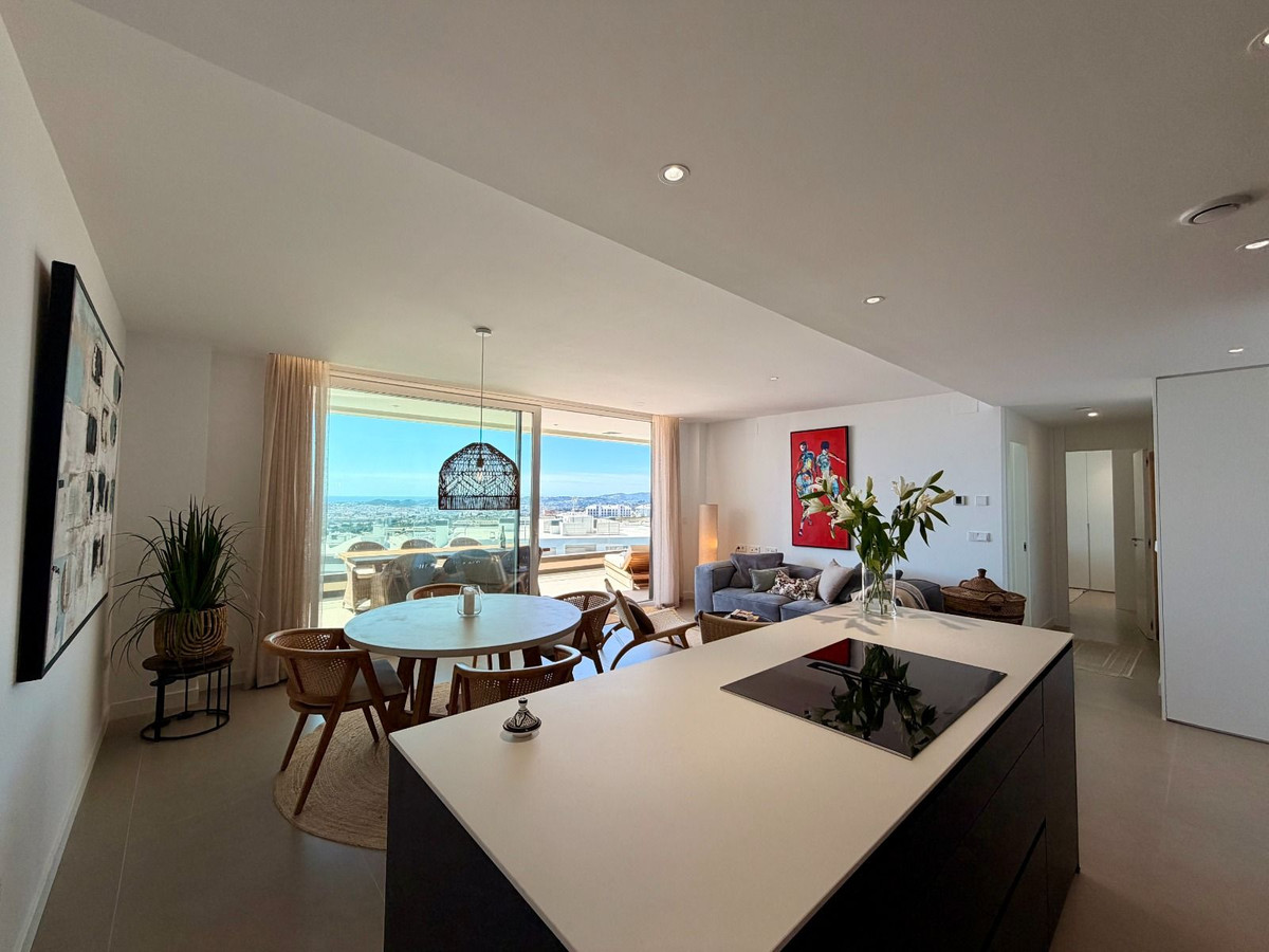 Denne moderne lejlighed byder på enestående, uforstyrret panoramaudsigt over Middelhavet, Fuengirolas marina og kystlinjen — en spektakulær kulisse fra morgenens første lys til solnedgangen.