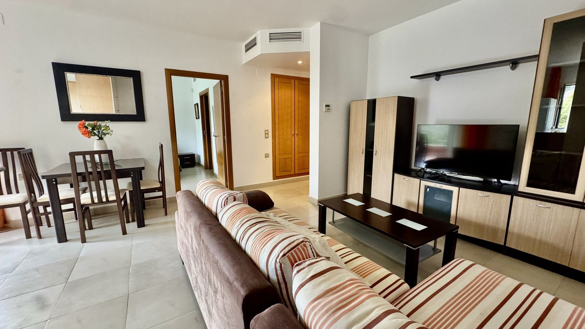 En lys lejlighed med et soveværelse og et badeværelse er til salg i Sensara-urbanisationen i Benalmádena. Sensara ligger midtvejs mellem Arroyo de la Miel og Benalmádena Pueblo. Lejligheden byder på en smuk udsigt over den fælles have, golfbanen, bjergene og havet. Den vender mod øst.