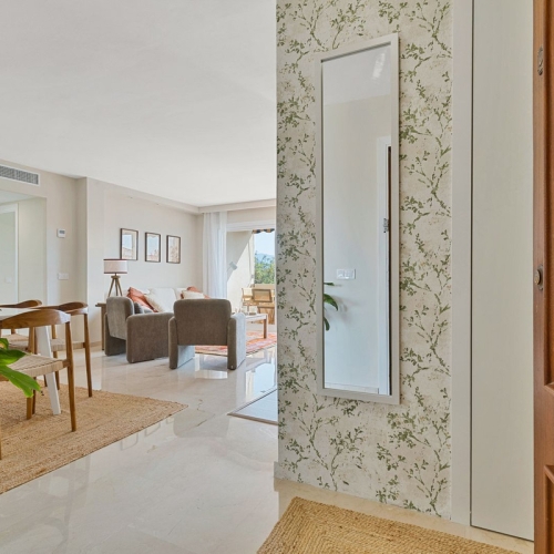 Ideally located in the heart of Nueva Andalucía, this beautifully renovated apartment features a large terrace with spectacular mountain and sea views. The property offers modern interiors, abundant natural light, and an exceptional location close to restaurants, golf courses, and all amenities, making it perfect as a permanent residence, holiday home, or investment. Located within a secure gated community, residents can enjoy access to a communal swimming pool and well-maintained surroundings. The apartment is sold fully furnished and includes a private parking space with elevator access making it a perfect turnkey property.