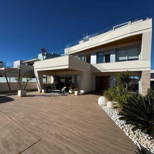Located in a coveted area of PLAYA FLAMENCA, this villa offers 191 m² of living space, meticulously designed for maximum comfort and functionality. The house is spread over three floors. The ground floor features a spacious and bright living room, a fully equipped kitchen, a bedroom, and a bathroom. The second floor includes two bedrooms and a bathroom, one of which has access to a large terrace. The basement has a bedroom and a bathroom, a laundry room, and a storage room. Its architecture combines spacious and bright areas with exclusive details that make this home a unique piece. The exterior of the house is surrounded by beautiful trees, creating an atmosphere of tranquility and absolute privacy. There is also a garage and a community pool.