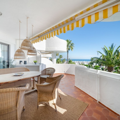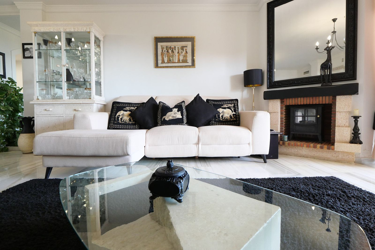Hvis du drømmer om HAVUDSIGT, er denne lejlighed med 2 soveværelser og 2 badeværelser (et badeværelse ensuite) i det eksklusive Calahonda-kvarter perfekt til dig. Lejligheden er beliggende i en meget velholdt bygning. Når du træder ind, finder du køkkenet på din venstre side. Stuen/spisestuen med pejs åbner ud til en stor terrasse med en betagende udsigt over Middelhavet. Soveværelset med eget badeværelse har direkte adgang til terrassen. Gæsteværelset har eget badeværelse, der er tilgængeligt fra gangen.