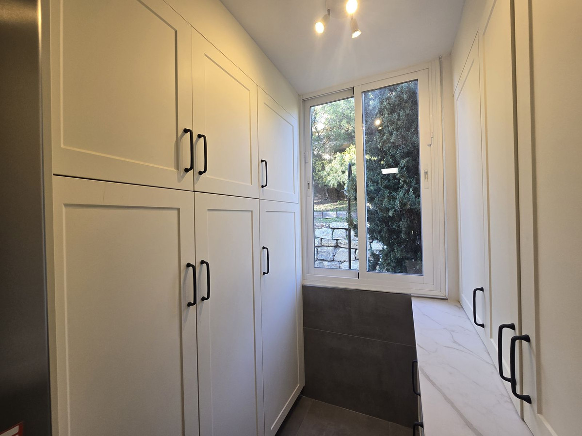 Soveværelset har eget badeværelse, og lejligheden har underjordisk privat parkering og en elevator i bygningen for ekstra bekvemmelighed.