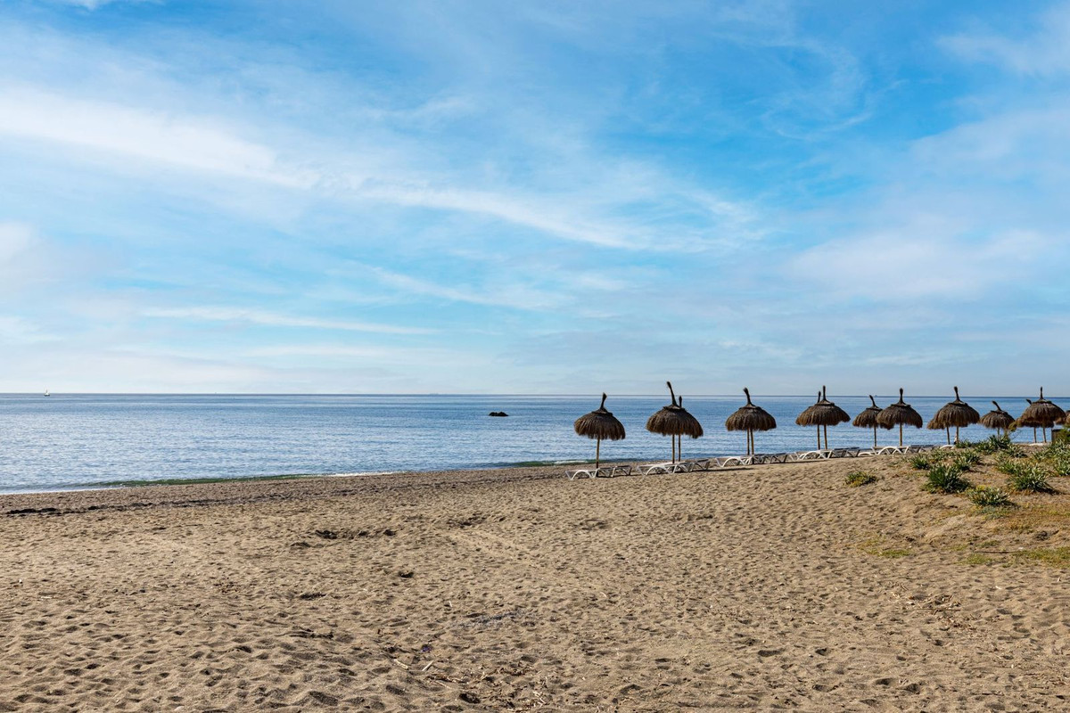 The property is set within a beautifully maintained beachfront community featuring lush landscaped gardens and a large swimming pool, ideal for enjoying the year-round sunshine. A popular beach bar located nearby adds to the vibrant coastal atmosphere during the warmer months, while Marina Duquesa is just a scenic 20-minute walk along the beach, offering a variety of restaurants, cafés, and marina life. The vibrant town of San Luis de Sabinillas hosts all local amenities and is just a five minute drive away, making for a highly convenient lifestyle.