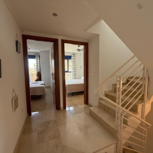 From the living room, there is access to the other two bedrooms, all with built-in wardrobes, and a second full bathroom, making this apartment a perfect option for large families or for those who need extra space for a home office or guests.