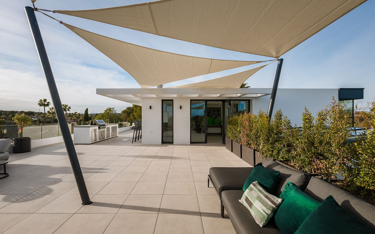 Egenskaber : Overdækket Terrasse, Elevator, Indbyggede Garderobeskabe, Privat Terrasse, Solterasse, Satelit TV, WiFi, Motionsrum, Spillerum, Gæstelejlighed, Gæstehus, Pulterrum, Vaskehus, En-Suite Badeværelse, Marmorgulv, Jacuzzi, Bar, Barbeque, Termoruder, Home Automation , Kælderen, Optisk Fiber.