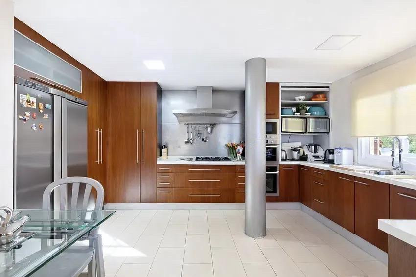 On the -1 level, you will find a garage with space for two cars and a wood storage area, extensive built-in storage cabinets, a service room with bathroom, laundry area, and a living-room-style space with direct access to the garden via a separate staircase. The home also features a convenient dumbwaiter connecting the -1 level with the first floor, enhancing daily functionality.