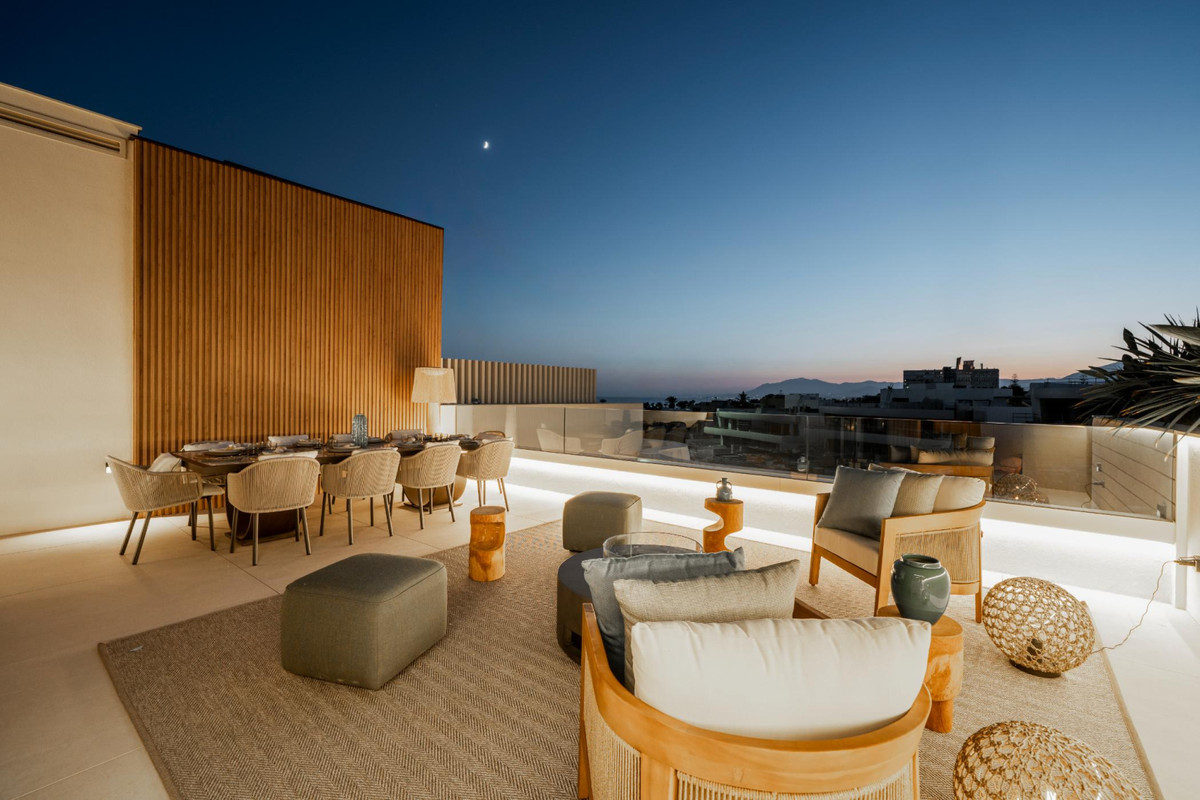 Beliggende på strandpromenaden i Marbella, omfatter denne eksklusive udvikling også elegante halvfristående villaer designet til at tilbyde privatliv, plads og exceptionel kvalitet i et af de mest eftertragtede områder på Costa del Sol.