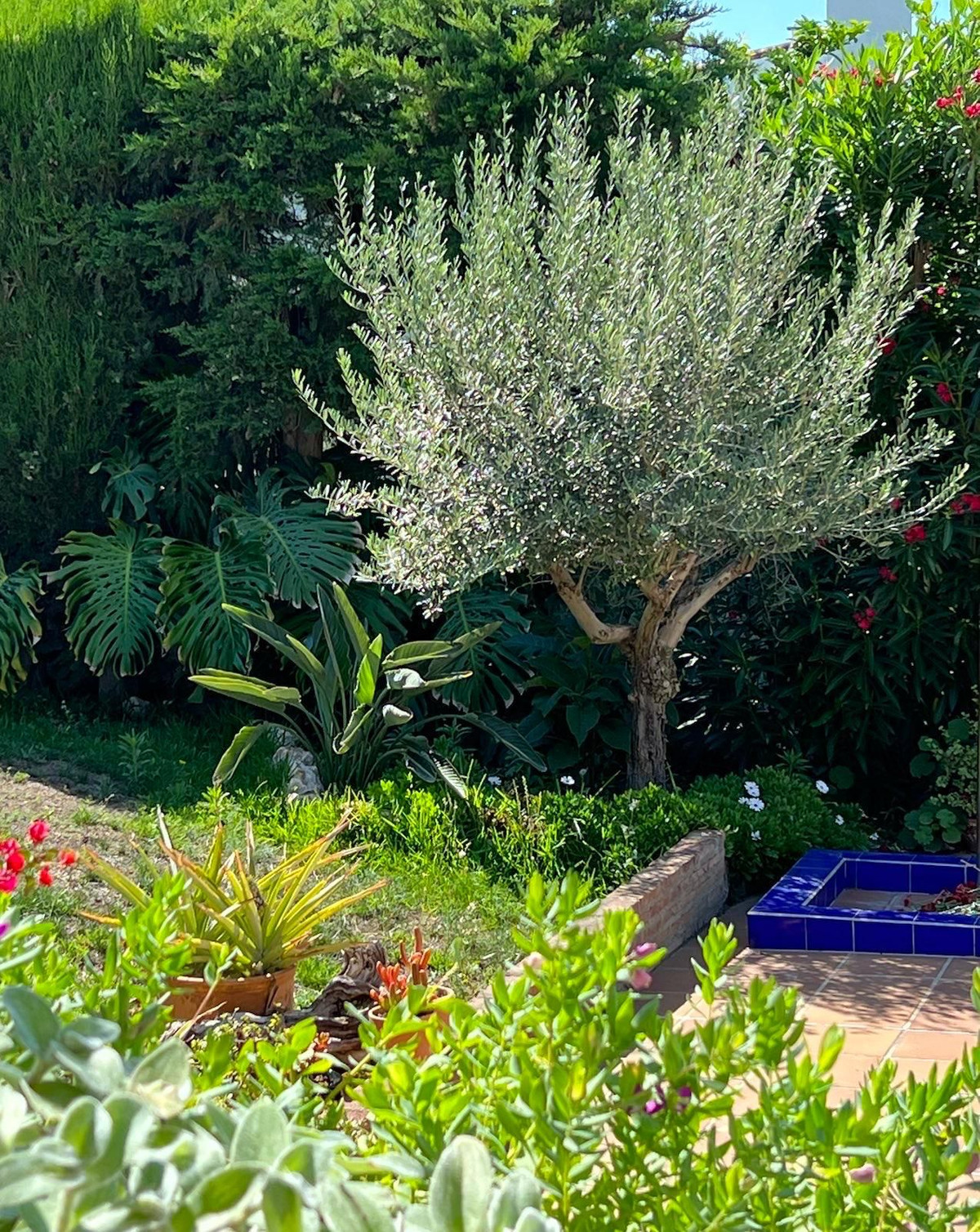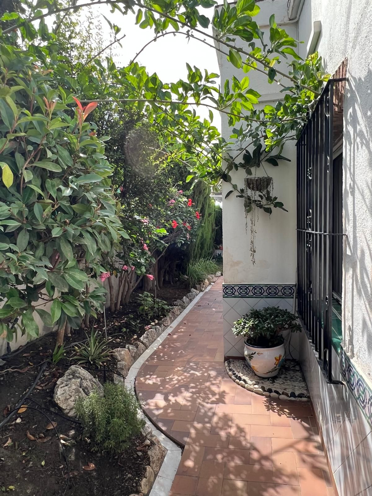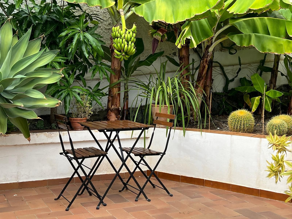 Huset byder sine besøgende velkommen gennem en lille patio inspireret af Córdoba, med et smukt gulv dekoreret med en stjerne dannet af hvide og grå sten. Dette hjørne, omgivet af frodig vegetation, rummer bananplanter, der giver frugt om vinteren, kaffeplanter og andre prydplanter, som tilfører friskhed og karakter. I dette område findes også et praktisk rum til haveredskaber samt et vaskerum.