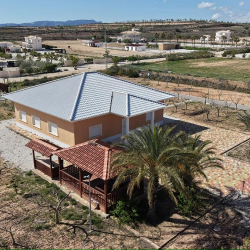 This beautifully designed home offers a perfect blend of modern style and practical living. Located in a peaceful area just 4 minutes to the vibrant town of Pinoso, it provides easy access to all local amenities while enjoying stunning views of surrounding vineyards and orchards.With an open and bright structure, the home features a spacious open-plan living room and kitchen, ideal for sharing special moments. The kitchen, equipped with a modern breakfast bar, seamlessly integrates with the living room, creating a fluid and welcoming atmosphere. Large windows allow natural light to flood every corner of the house, providing a sense of spaciousness and well-being.The property offers three comfortable bedrooms with fitted wardrobes, one of them with an open dressing room integrated into the bedroom and two modern bathrooms (one is ensuite), perfect for the whole family or to host friends and loved ones. Outdoor living is just as impressive, with a large covered porch and a spacious patio surrounding a private swimming pool inviting you to relax and enjoy the weather. The fully fenced property, equipped with electric gates, ensures security and privacy while still being part of a friendly neighborhood.If you're looking for a retreat from the hustle and bustle without being too far from the town's amenities, this is the perfect house. A unique gem that could be yours!Contact us today to learn more or schedule a viewing! The property is vacant and offers immediate access. The seller is in the process of registering the property and swimming pool in the Land Registry, and the latest update is that this should be done by the end of April 2026. We have a large portfolio of properties in the Costa Blanca and Costa Calida areas, specialising in country properties, villas, fincas, building plots and design and build options in the Alicante and Murcia regions with a particular emphasis on Elda, Monovar, Pinoso, Sax, Villena, Aspe, Fortuna, Albacete and many more surrounding areas. We have been established since 2004 and have decades of experience between the team which we bring to bear to help you find and secure your new dream home. We help you every step of the way to make sure your purchase in Spain is safe and hassle free. We are not here to sell you a property, we are here to help you realise your dream and find what is right for you. With us you are in the safest hands. Contact us now to have a no obligation chat about how you too can realise your dreams.