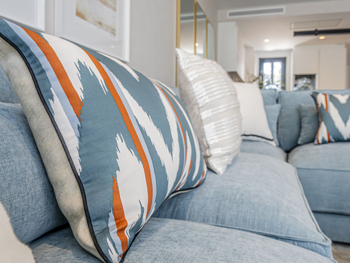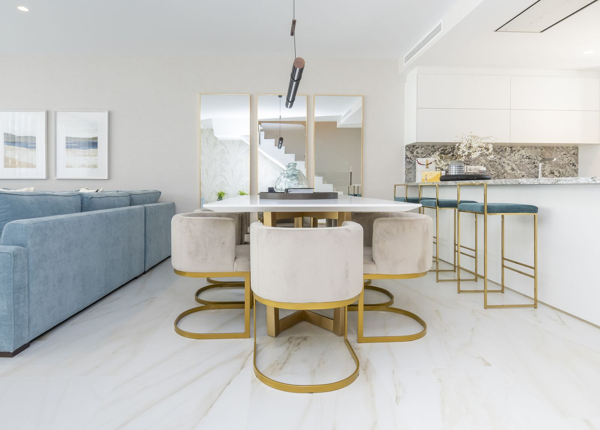 The luxury townhouse offers 177.5 sqm distributed over two floors, along with 59.10 sqm of private garden area. It has been fully decorated and furnished by the prestigious interior design company La Albaida.