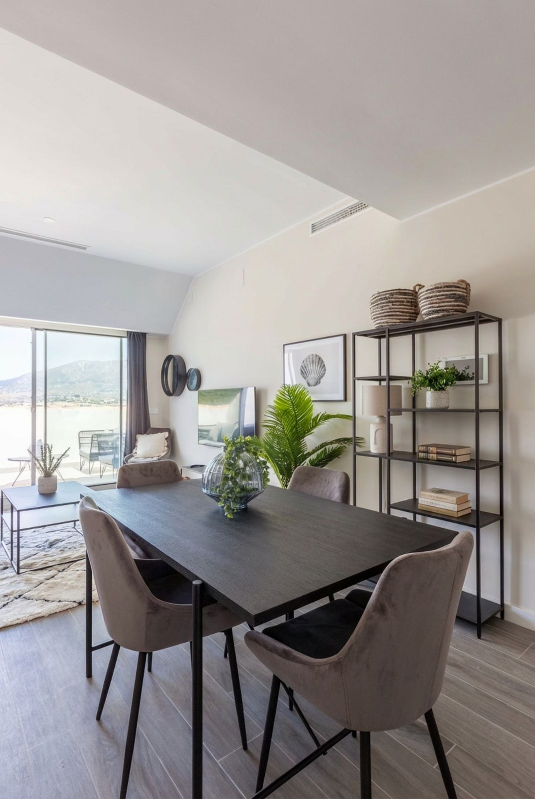 Built in 2019, the apartment offers 55 m² of interior space and a 6 m² private terrace with open views of the sea, the Mijas mountains, and the surrounding town. The property is sold fully furnished and ready for rental operation, making it an ideal investment for short-term rental income or a holiday home on the Costa del Sol.