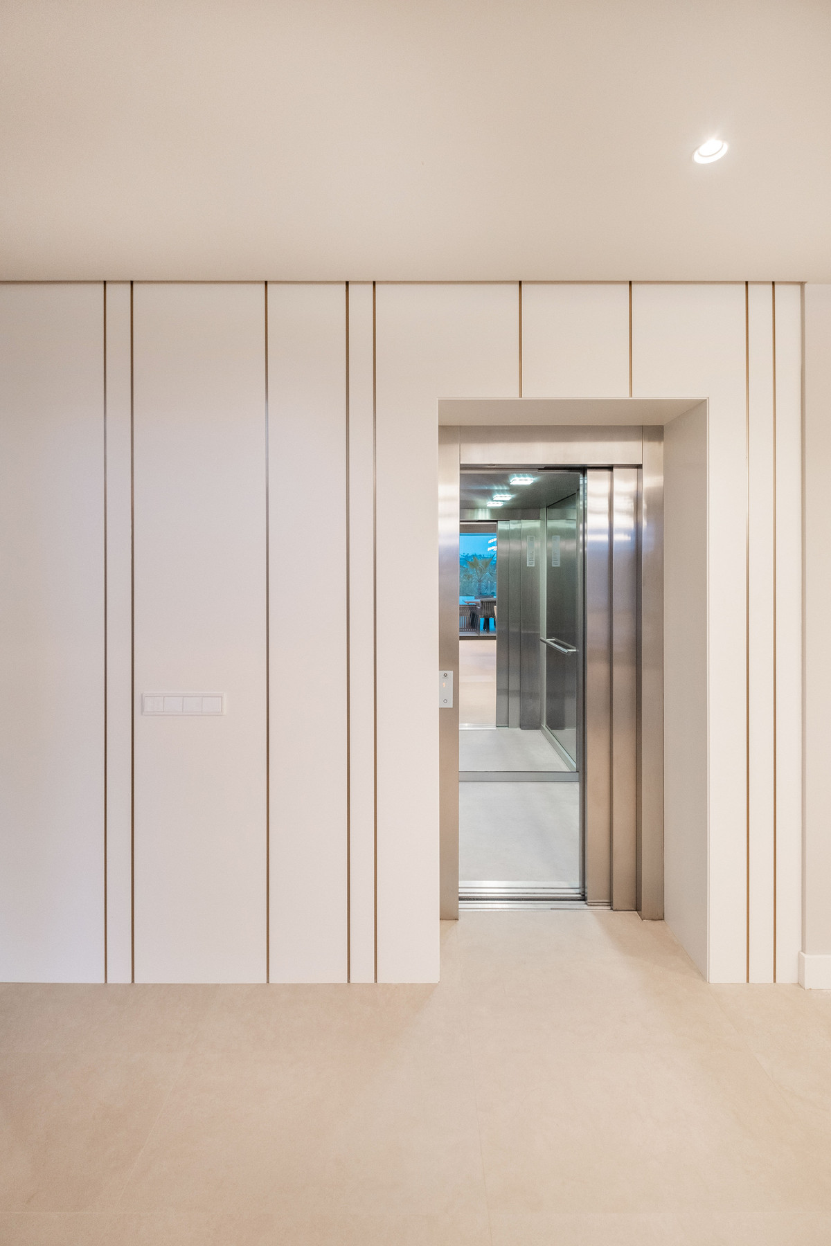 Additional features include a lift connecting all three levels, aerothermal hot and cold air conditioning, water-based underfloor heating throughout the house with electric heating in the bathrooms, hydromassage bathtub, fireplace, Neff appliances, safe, video intercom and alarm system, and a home automation system controlled by two included iPads.