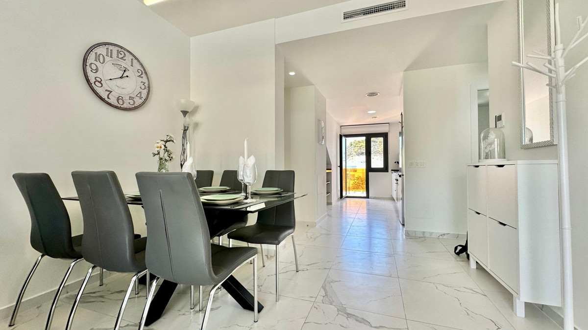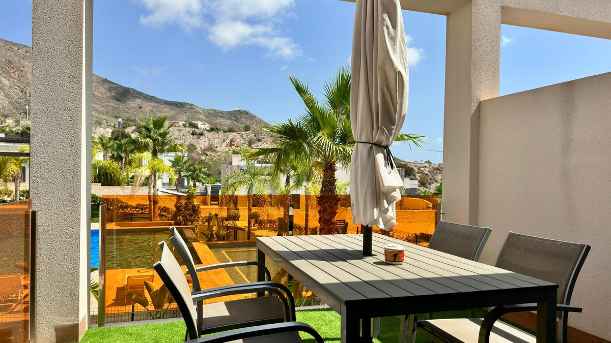 Apartment for sale in the Balcón de Finestrat area, located in the modern residential complex Alegria Village.One of the main advantages of the property is the private roof terrace, equipped with a canopy, relaxation area, and its own jacuzzi. Here **a recreational space with a barbecue area has been arranged**, from which beautiful views of Finestrat and Benidorm can be enjoyed.The apartment is situated in a well-maintained urbanization with common infrastructure: swimming pool, gym, sauna, and green areas for the residents' relaxation. The price also includes a parking space.The area combines a peaceful atmosphere with convenient proximity to all the necessary infrastructure. The Centro Comercial La Marina shopping center is just 5 minutes away by car, and the nearest beaches of Benidorm can be reached in about 7 minutes by car. Nearby are green areas, walking paths, and playgrounds.