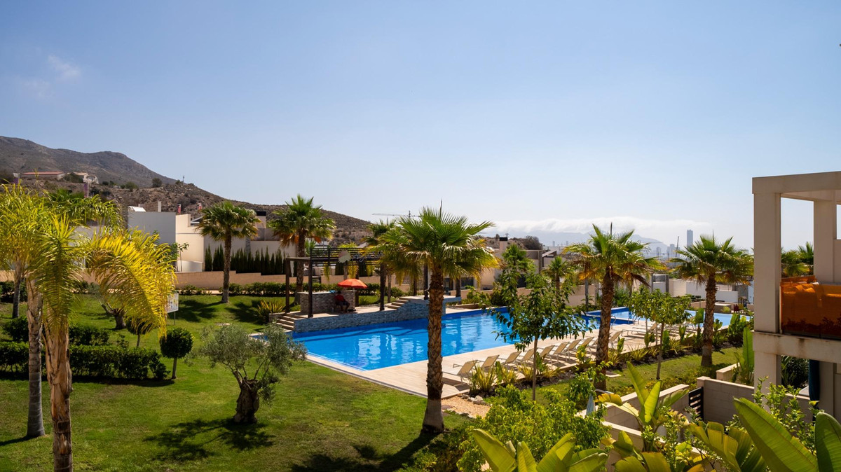 A penthouse is for sale in the Balcón de Finestrat area, located in a modern residential complex Alegria Village.One of the main benefits of the property is **a spacious private solarium on the roof**, equipped with BBQ and relaxation area. It is the perfect place to enjoy the Mediterranean climate and the open views of Finestrat and Benidorm.The residential complex offers a comfortable infrastructure for residents: **communal pool, well-kept gardens, playground, sauna, and gym**. The price also includes **a private parking space**.The complex is located in a quiet residential area with easy access to all necessary infrastructure. Just a few minutes away is the La Marina Shopping Center with shops, restaurants, and services. The Puig Campana Golf course is also nearby.Benidorm beaches can be reached in approximately **7–10 minutes by car**, making this property an excellent option for both living and investing on the Costa Blanca coast.