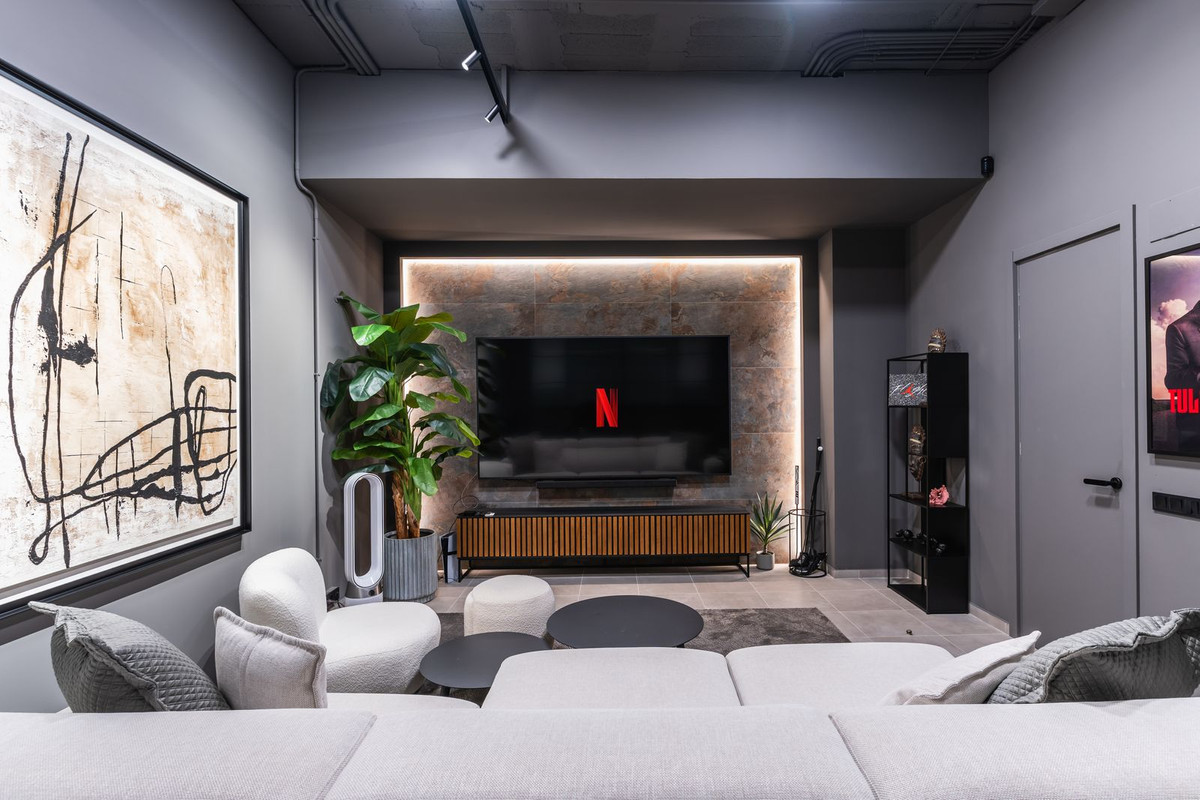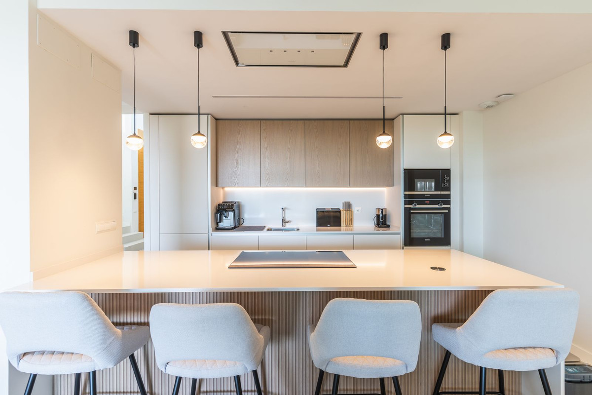 At the heart of the home is a bright open-plan living and dining area. Large windows lead directly to the terrace and private garden, allowing you to fully enjoy natural light and the Mediterranean climate all year round.