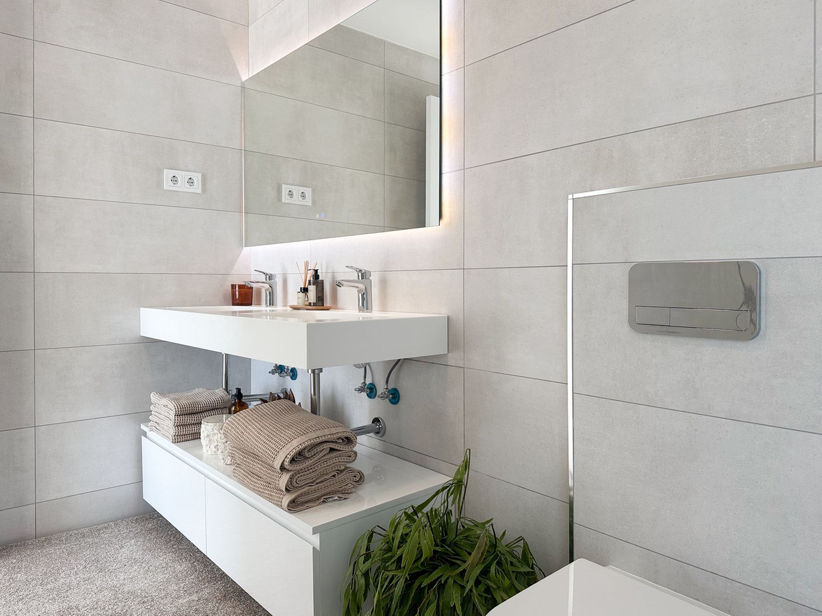 Boligen rummer 3 soveværelser og 2 moderne badeværelser, heraf ét en suite til master soveværelset. Alle soveværelser har direkte adgang til den skønne terrasse, hvor du kan slappe af og nyde det spanske klima samt den smukke havudsigt.