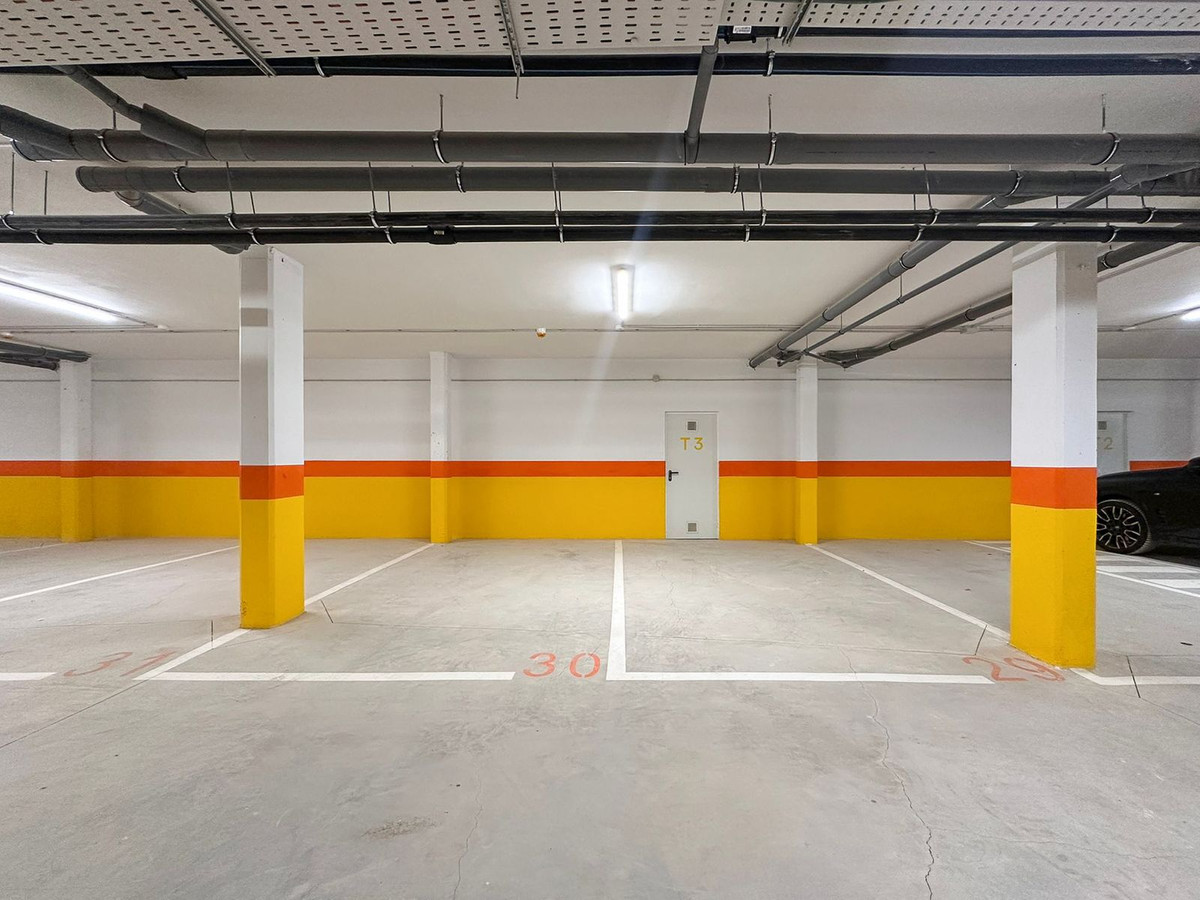Lejligheden har desuden to private parkeringspladser samt et ekstra opbevaringsrum på 16,29 m², som er placeret i garagen direkte bag parkeringspladserne.